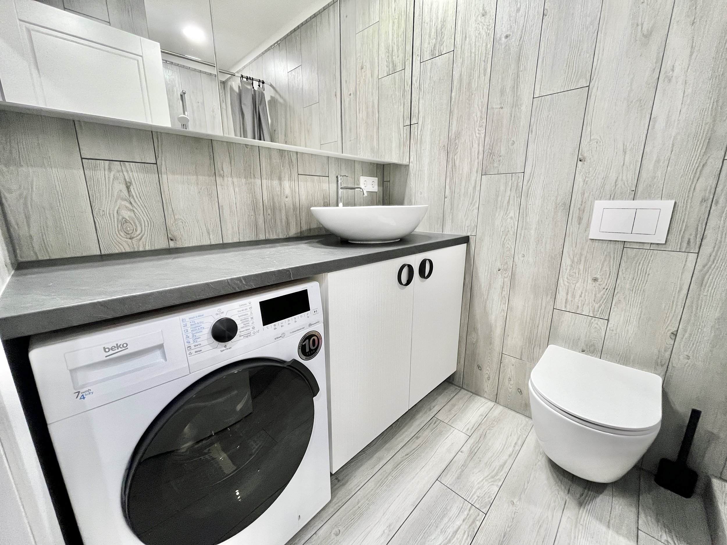 Vonios kambaryje – skalbimo mašina su džiovykle