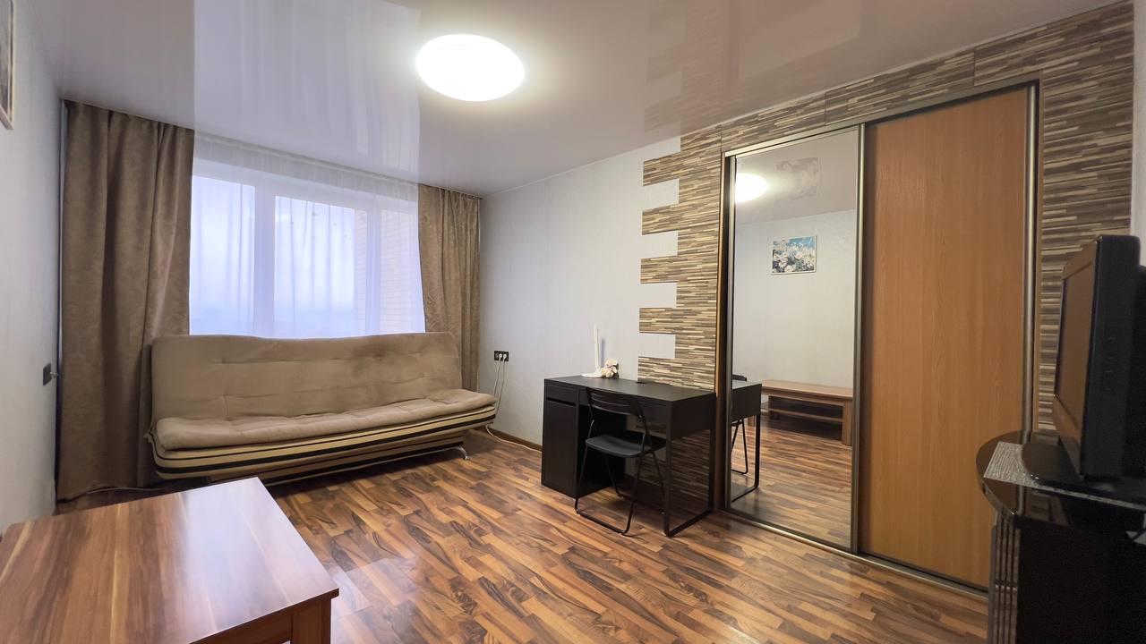-Pirmame kambaryje išskleidžiama sofa-lova ir talpi sieninė drabužių spinta