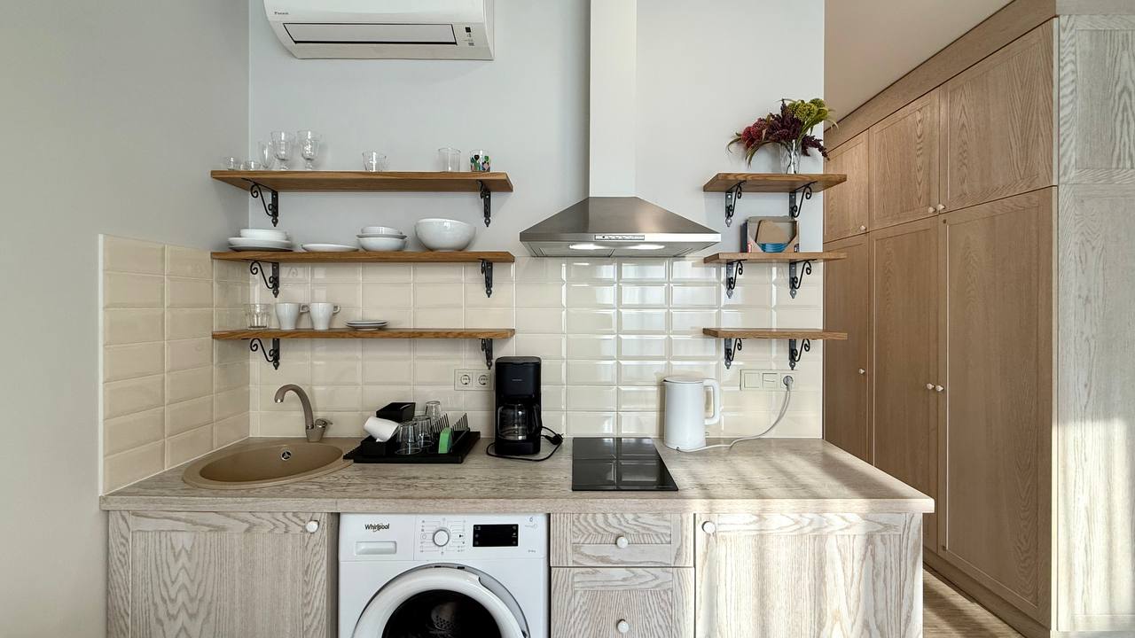 Šiuolaikiškai ir gražiai įrengtas 1 kambario butas su visais patogumais.