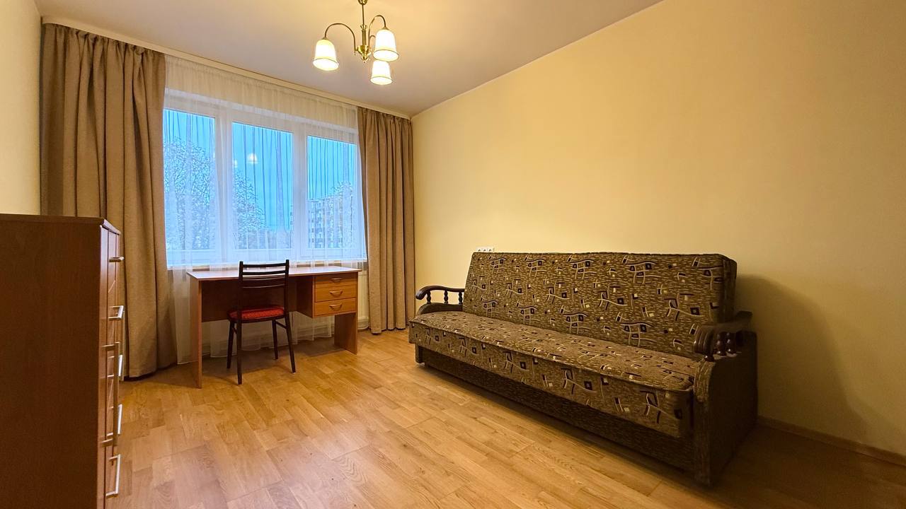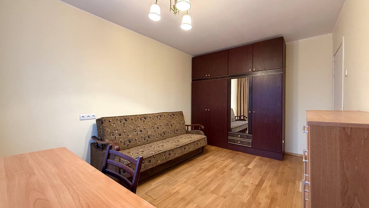 -Pirmame kambaryje išskleidžiama sofa-lova, darbo vieta ir didelė spinta jūsų drabužiams