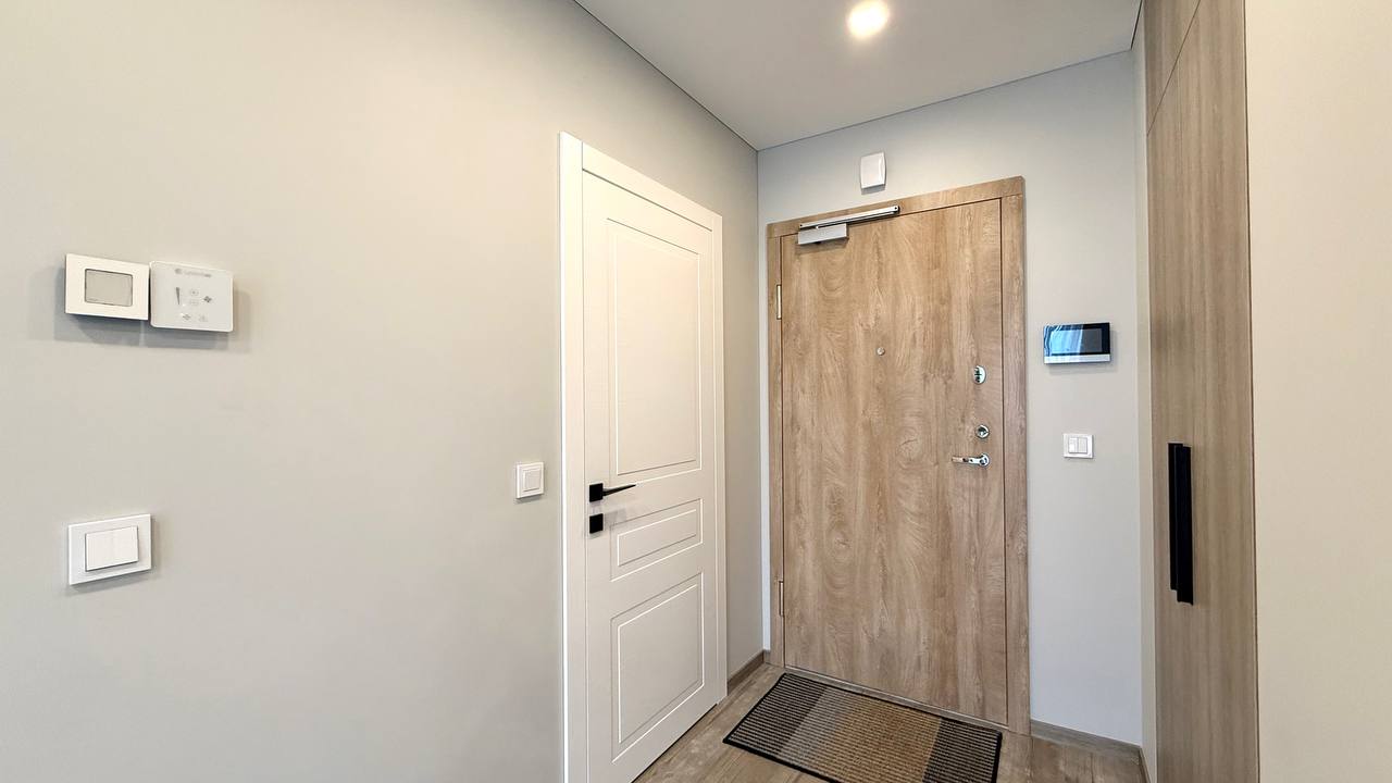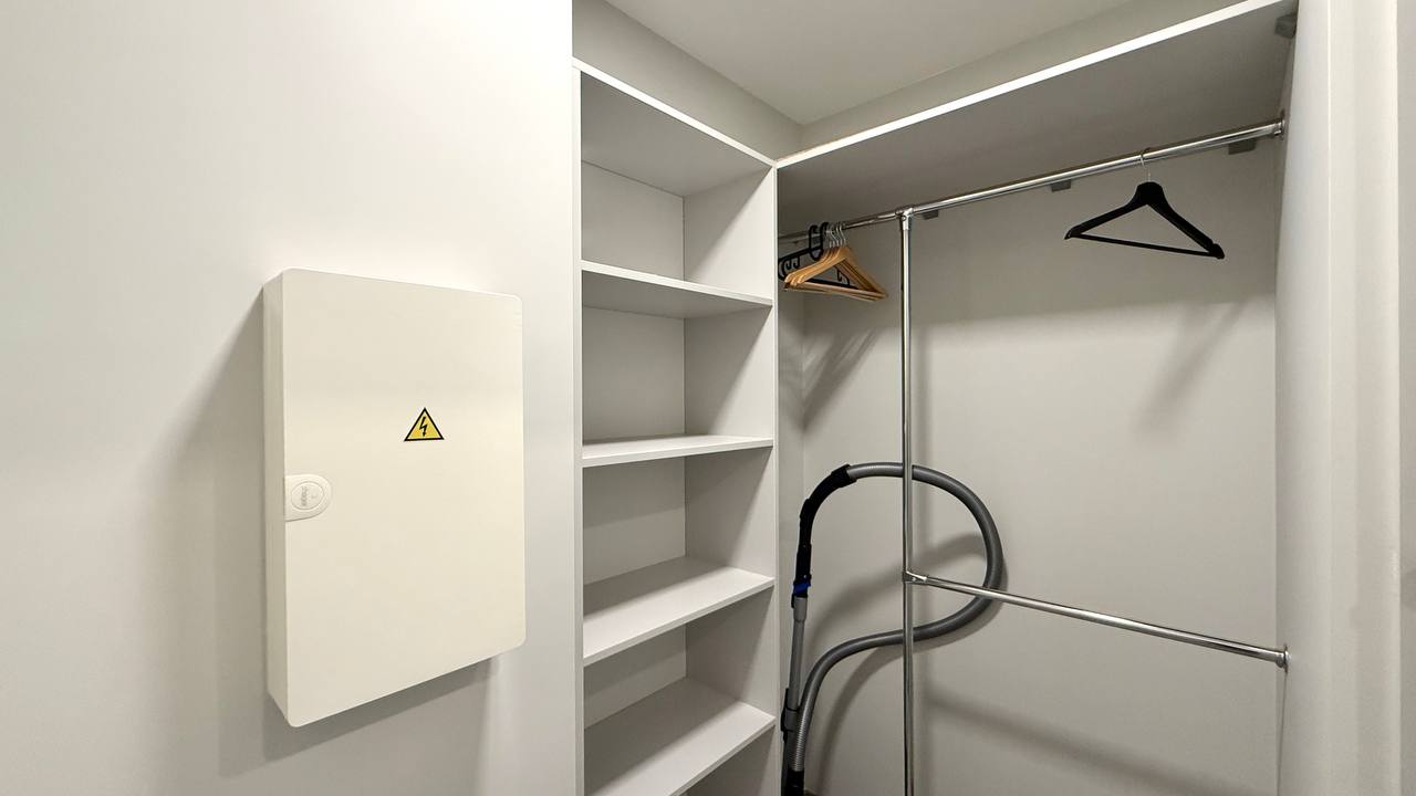 -Prieškambaryje įrengta drabužinė ir taip pat didelios, talpios spintos miegamajame