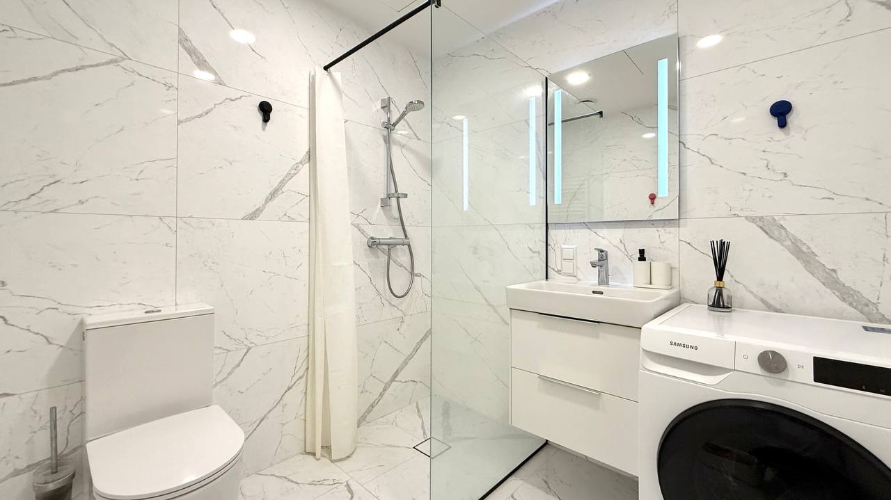 -Bute yra visi reikalingi baldai ir buitinė techika(viryklė, orkaitė, , indaplovė, šaldytuvas, skalbimo mašina su džiovinimo funkcija, televizorius)