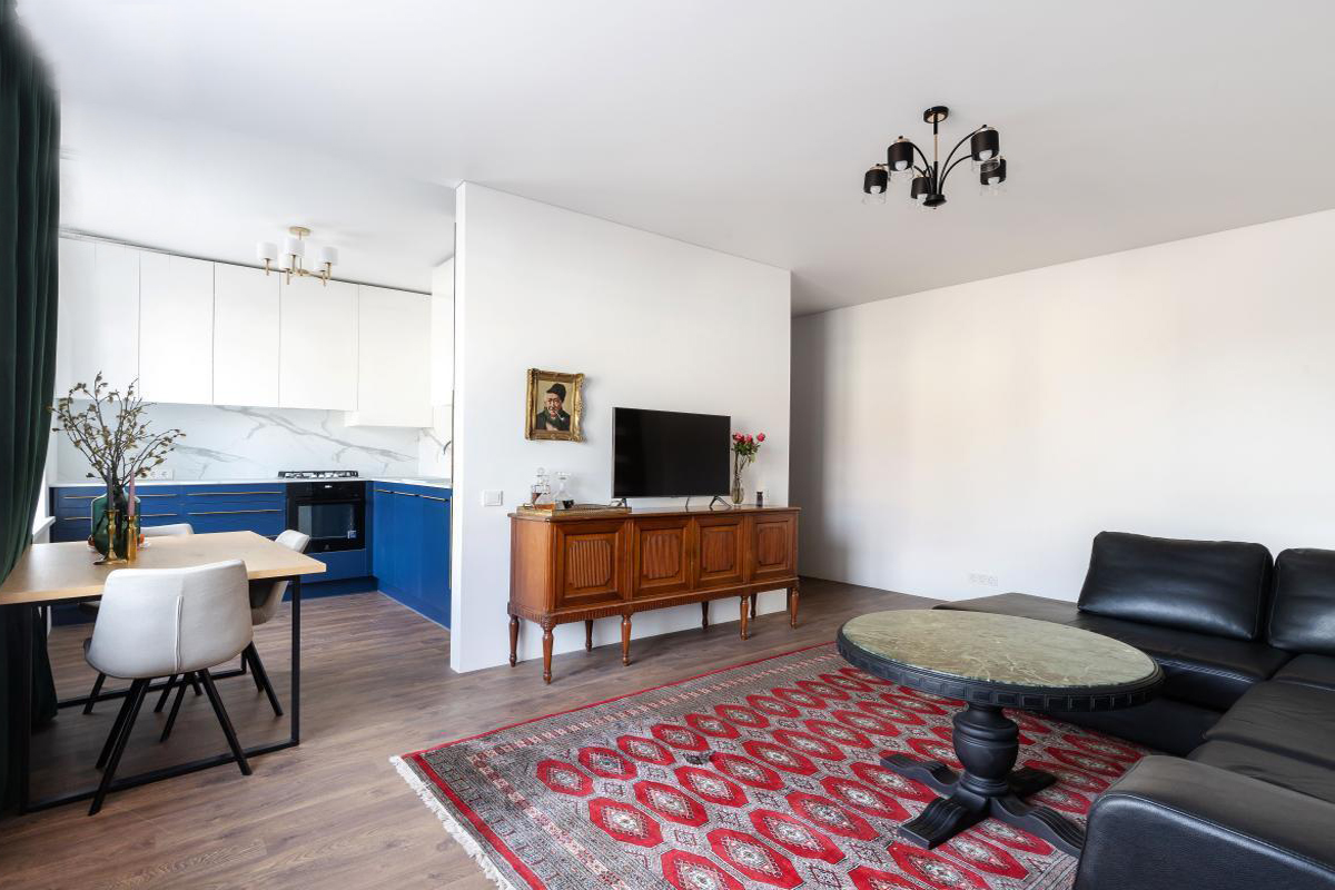 - Svetainė kartu su virtuve.