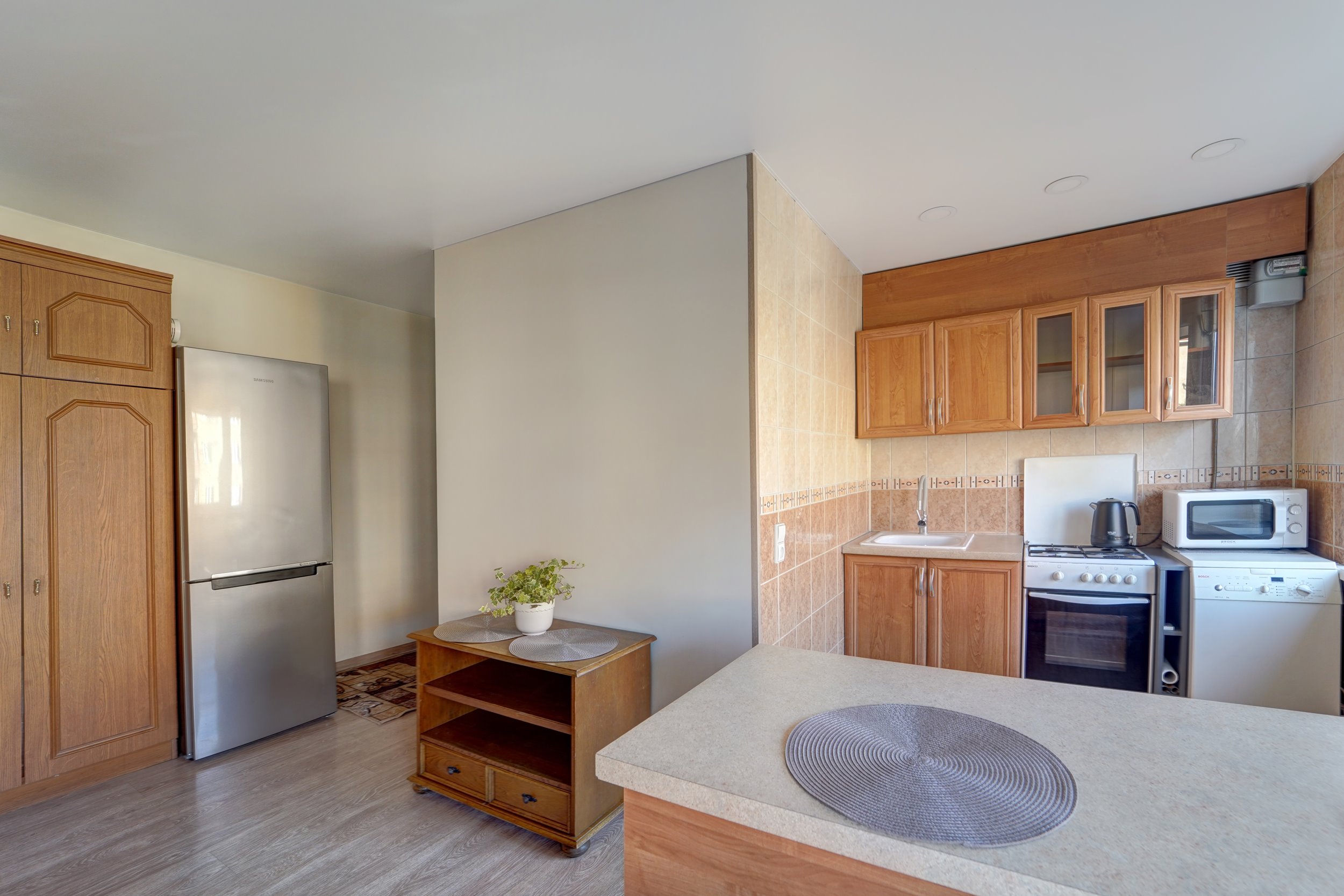 --Visa reikalinga buitinė technika: šaldytuvas, viryklė ir kt.