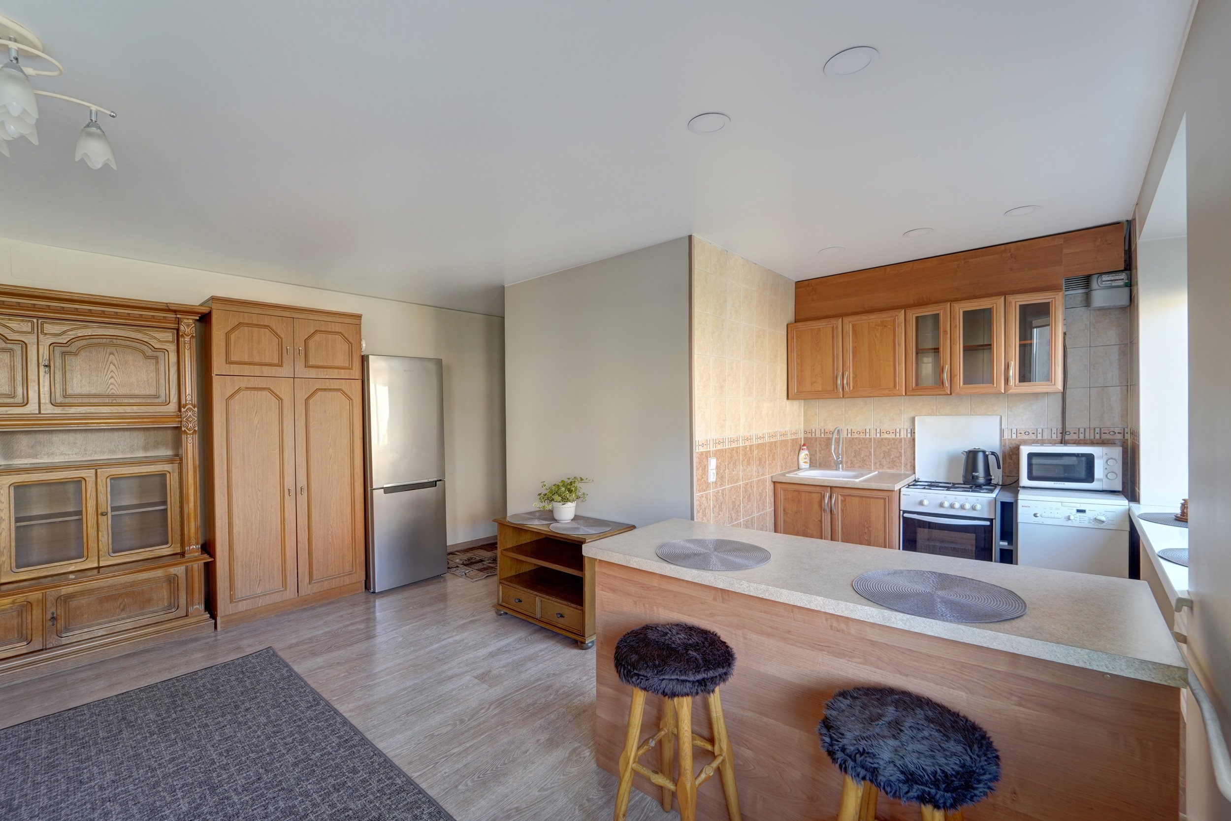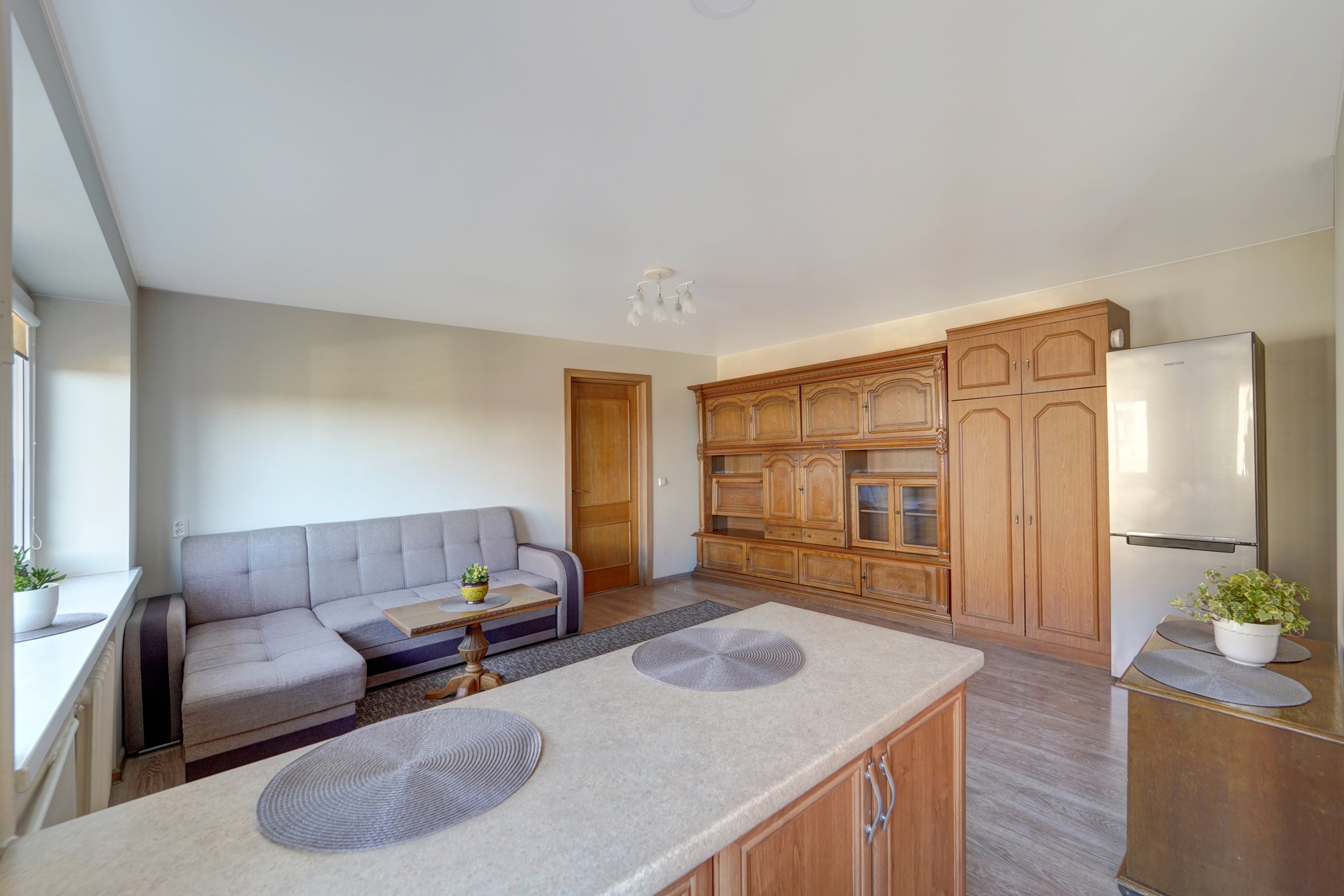-- Svetainė sujungta su virtuve;