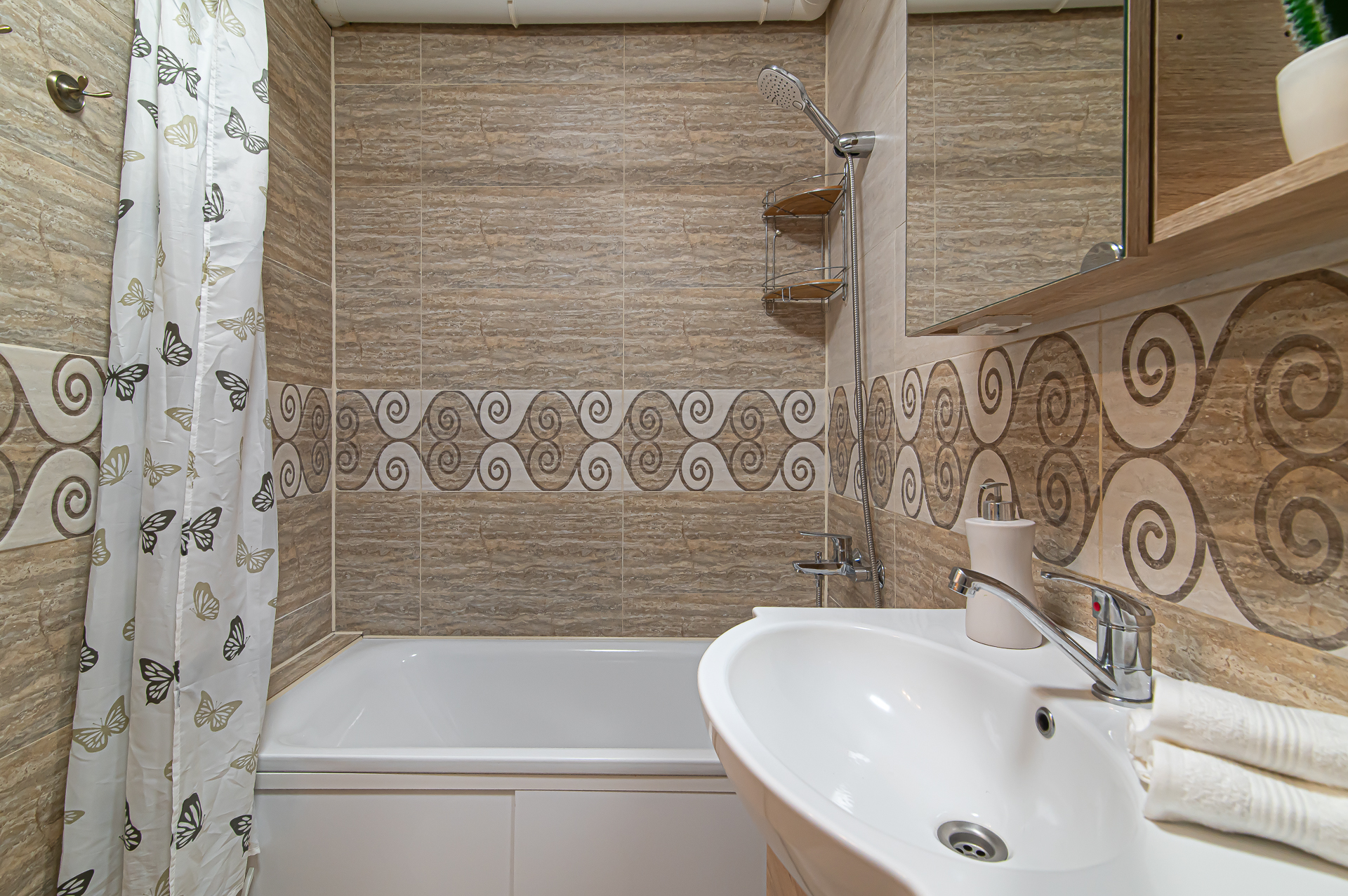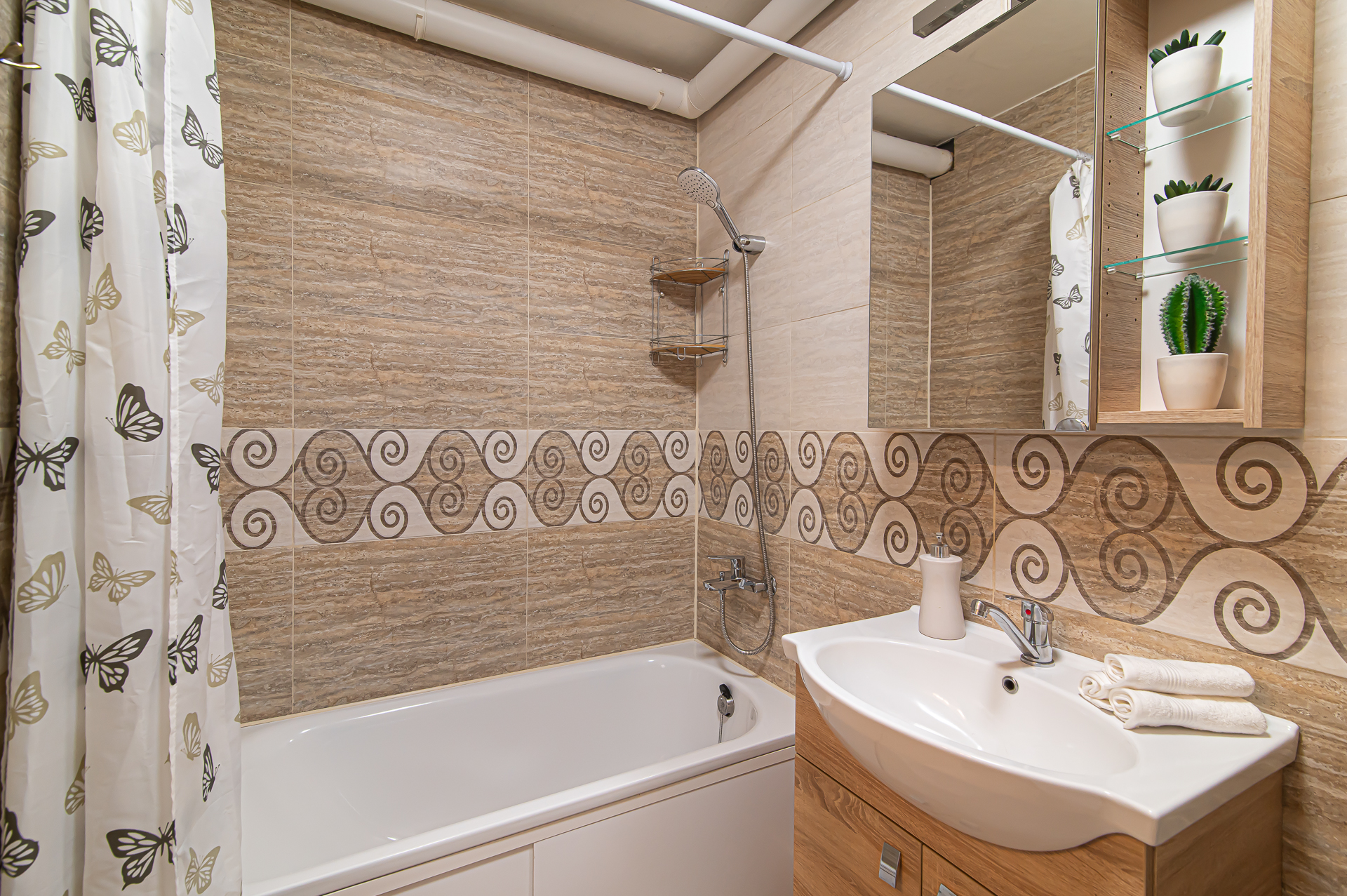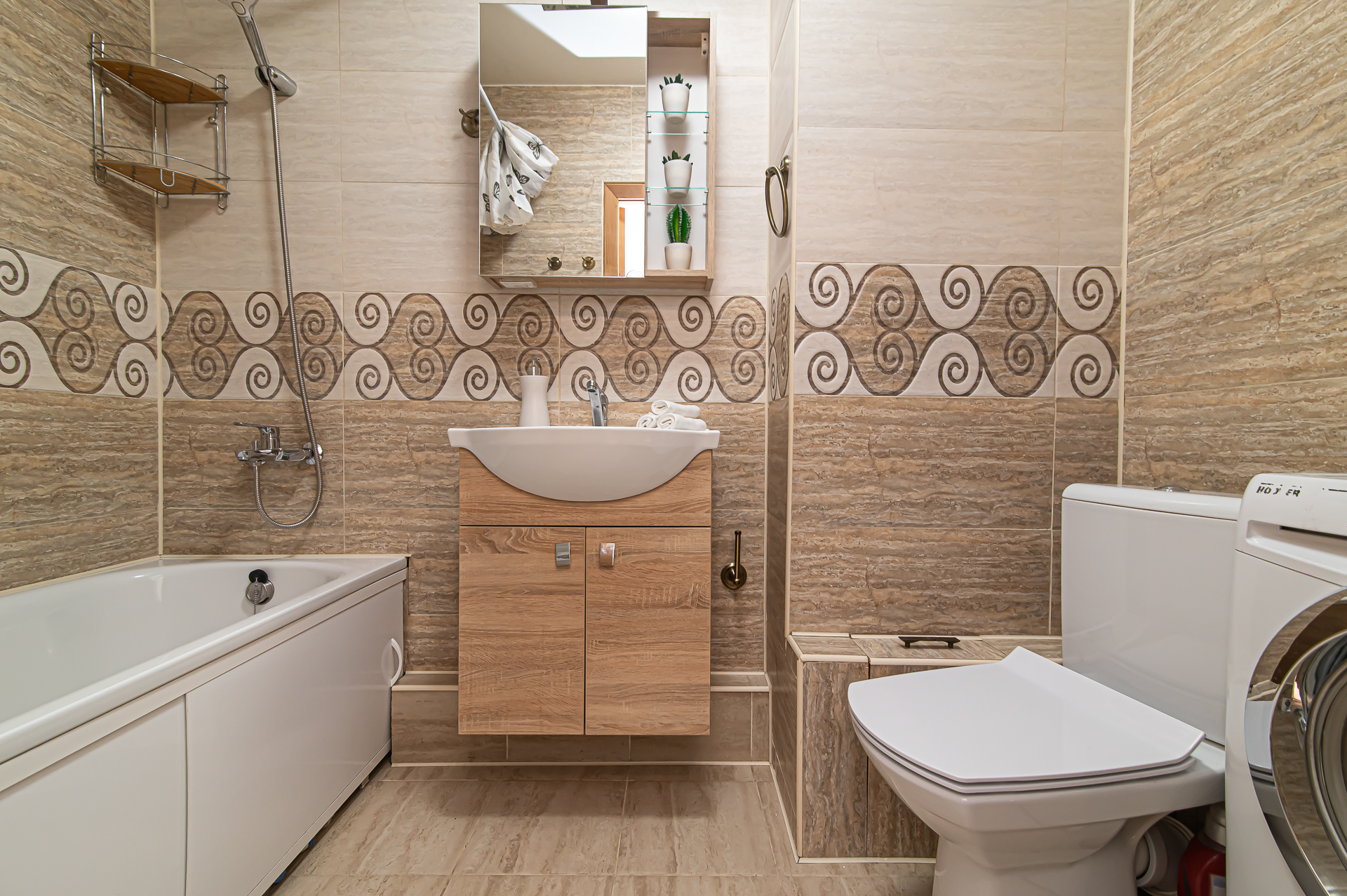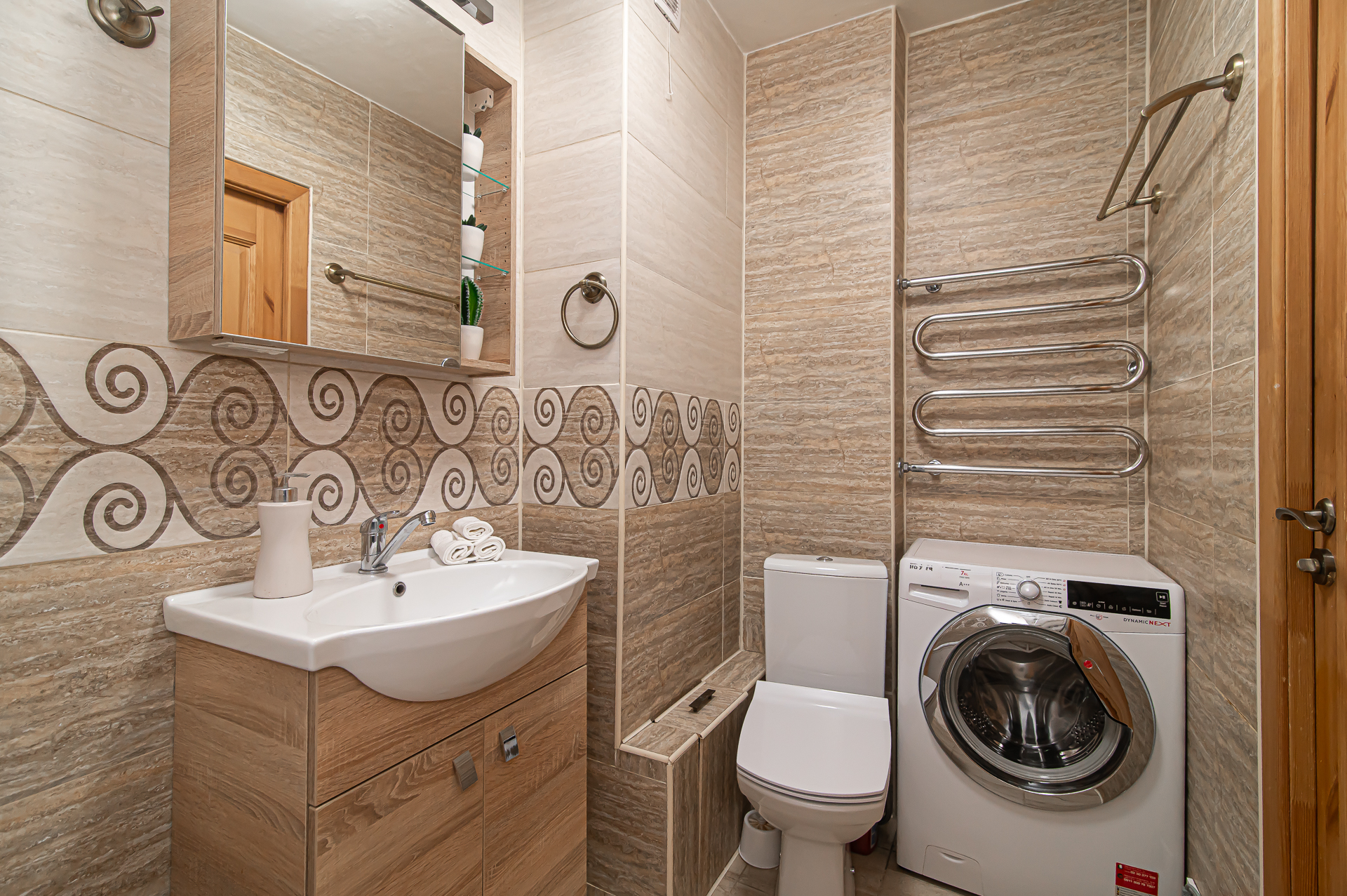 Erdvus vonios kambarys su vonia ir skalbimo mašina – 3,46 kv. m;