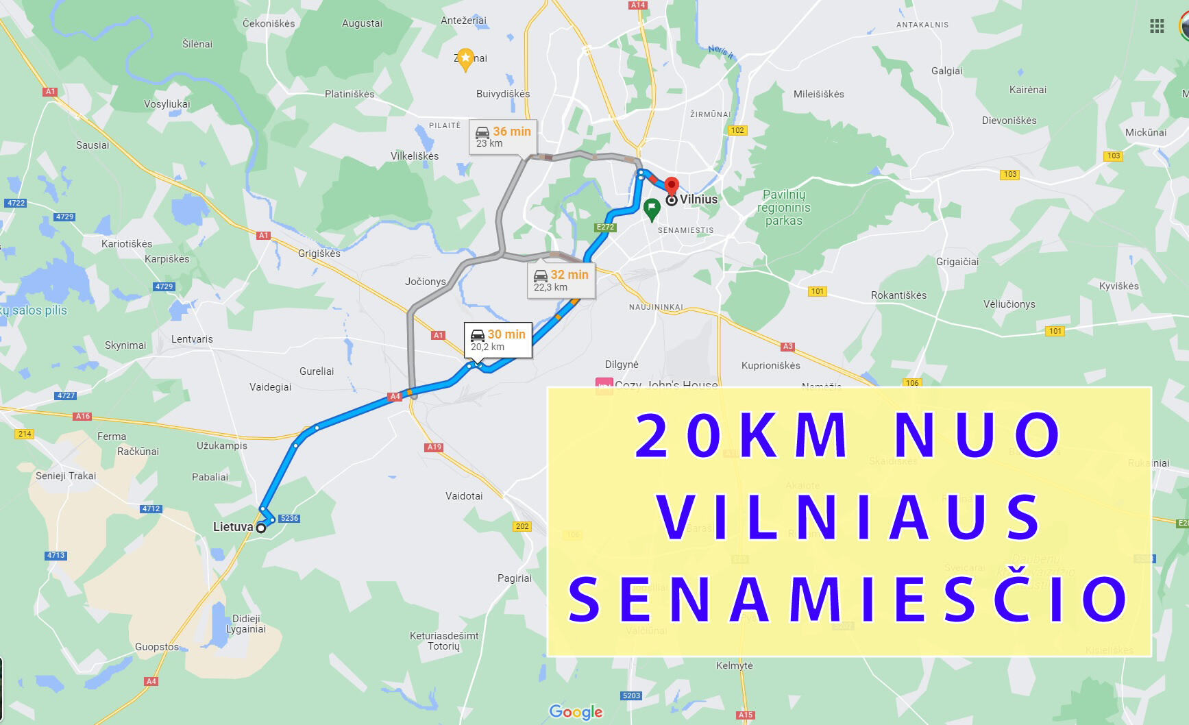 Iki Vilniaus (senamiesčio) ~ 20 km,