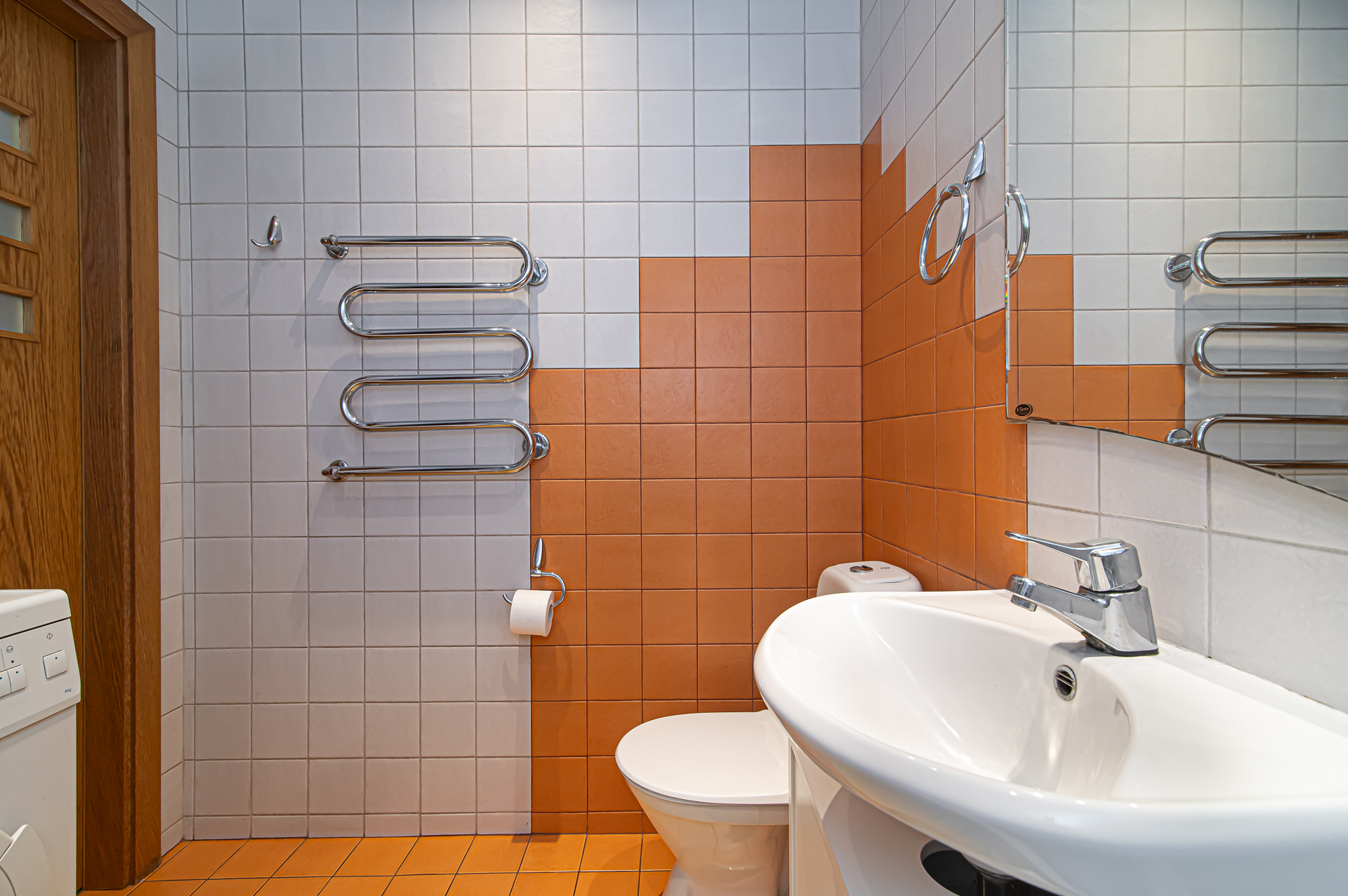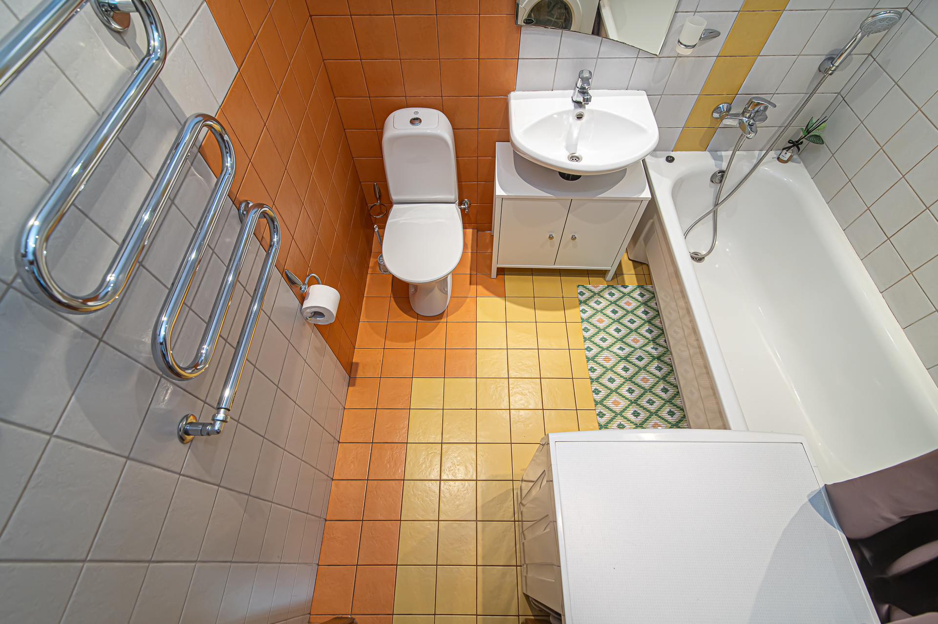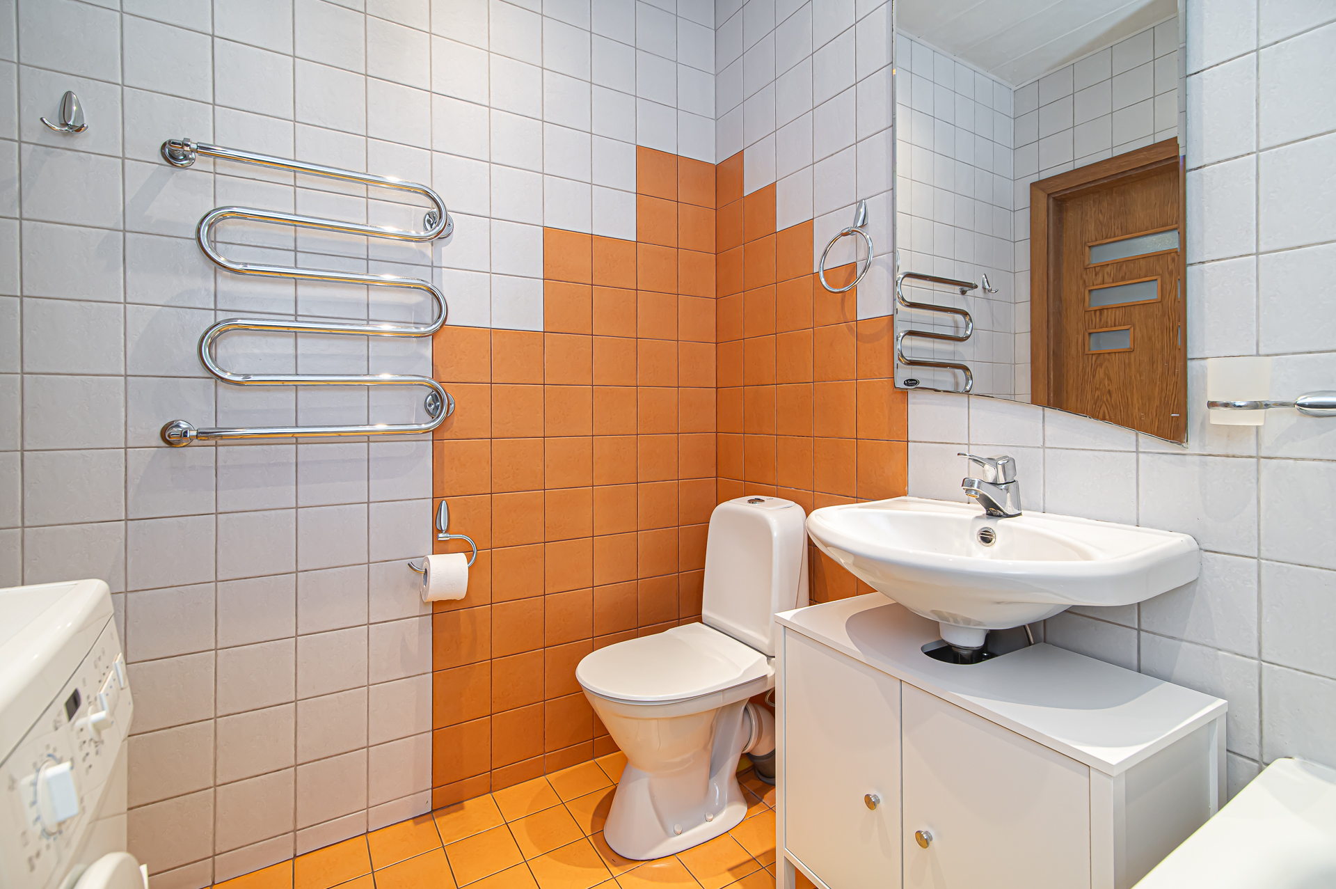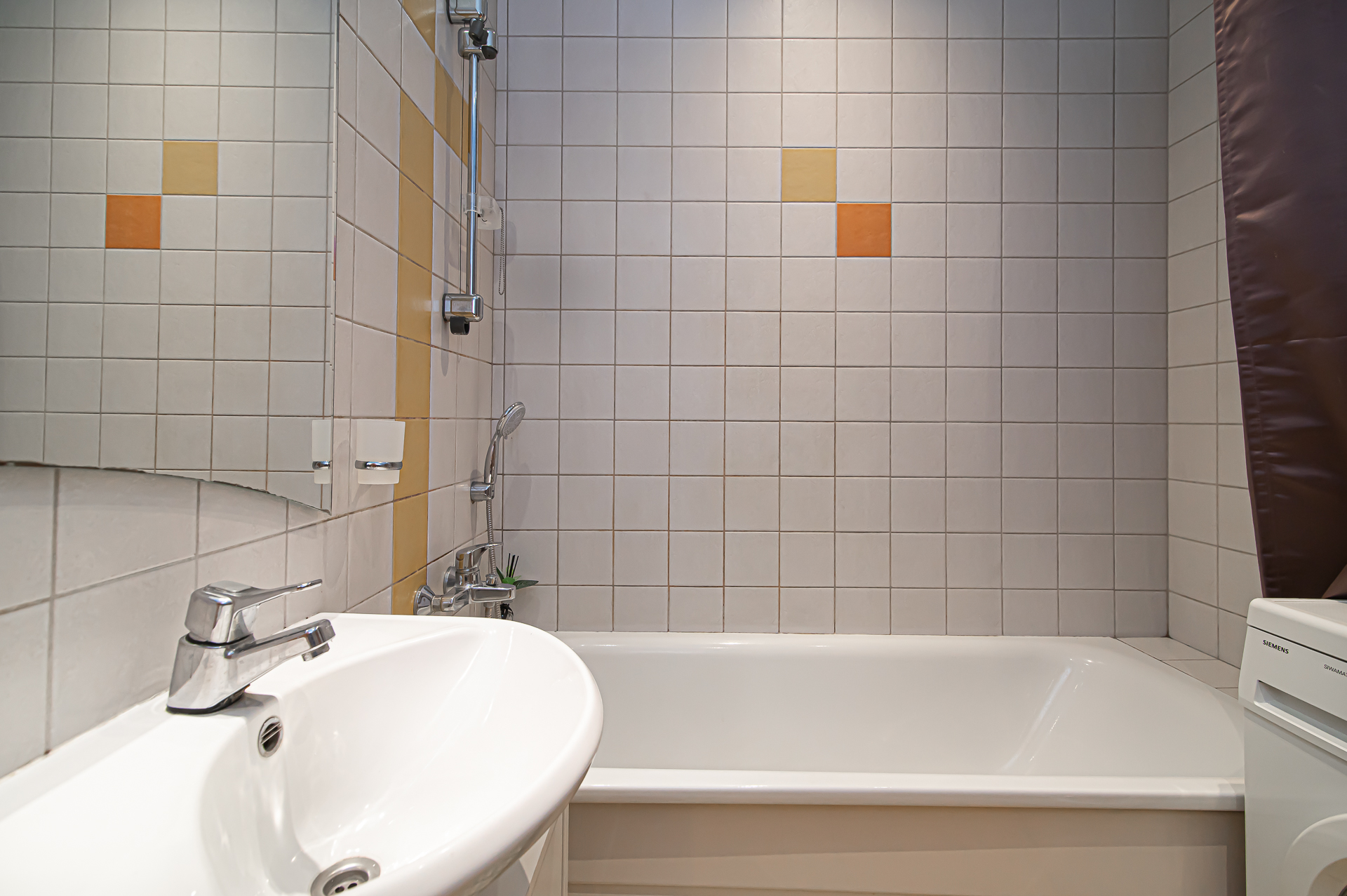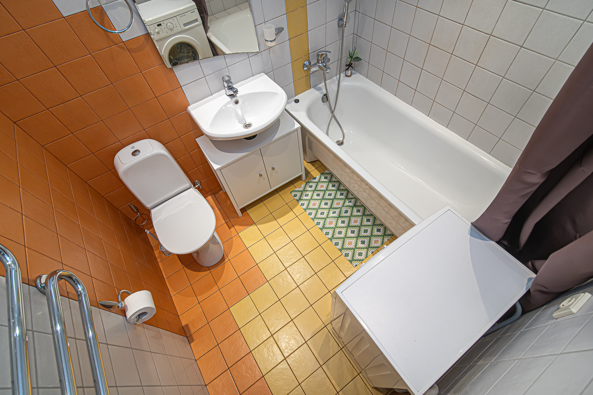 - Didelis vonios kambarys su vonia ir skalbimo mašina