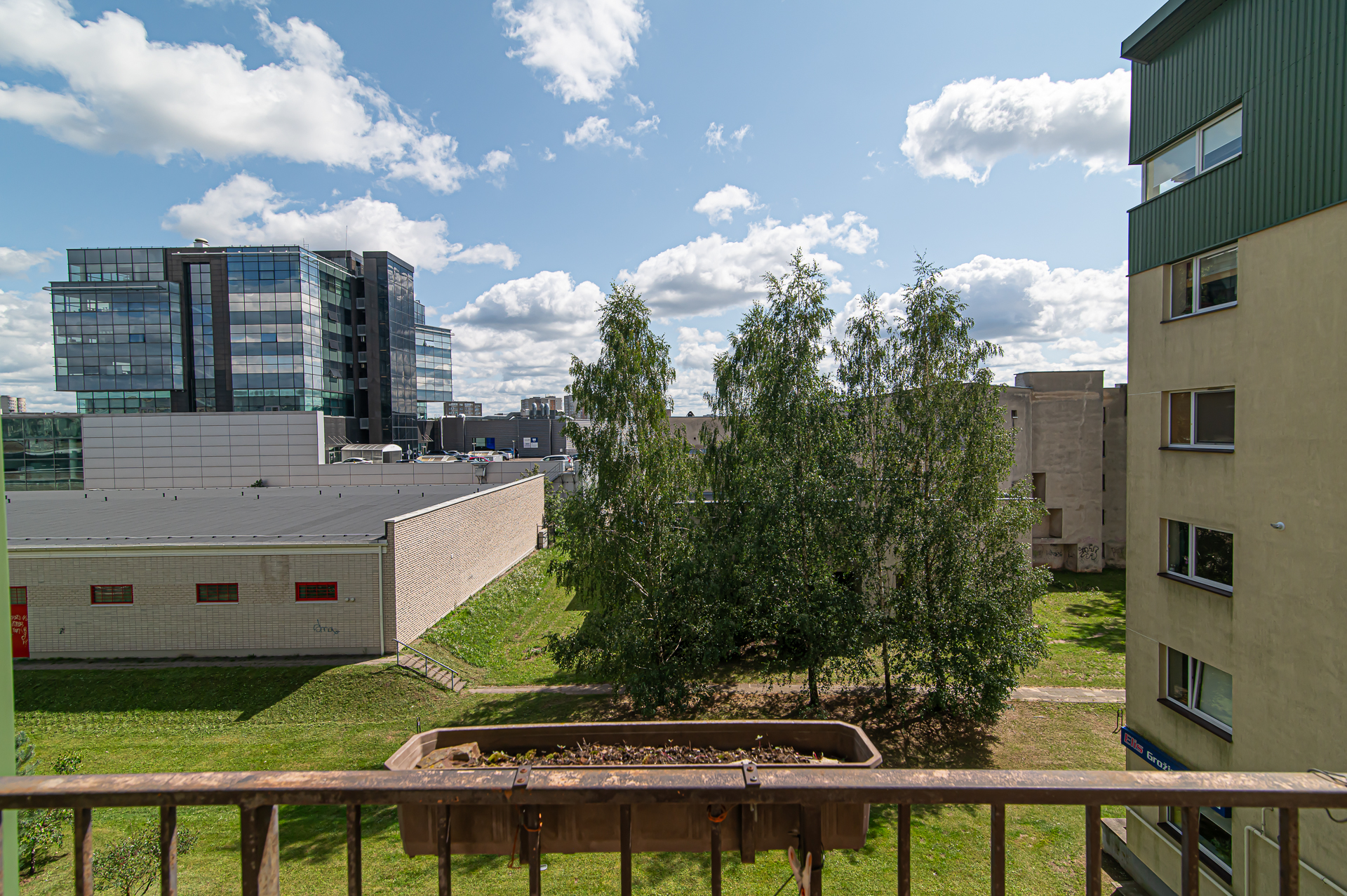 - Išplanavimas: miegamasis/svetainė su sofa-lova ir darbo stalu , virtuvės zona su valgomuoju stalu, vonios kambarys kartu su WC, prieškambaris su DIDELE drabužine IR BALKONAS.