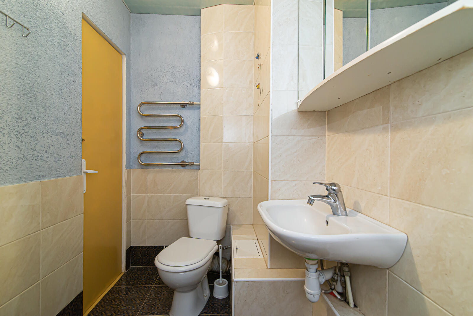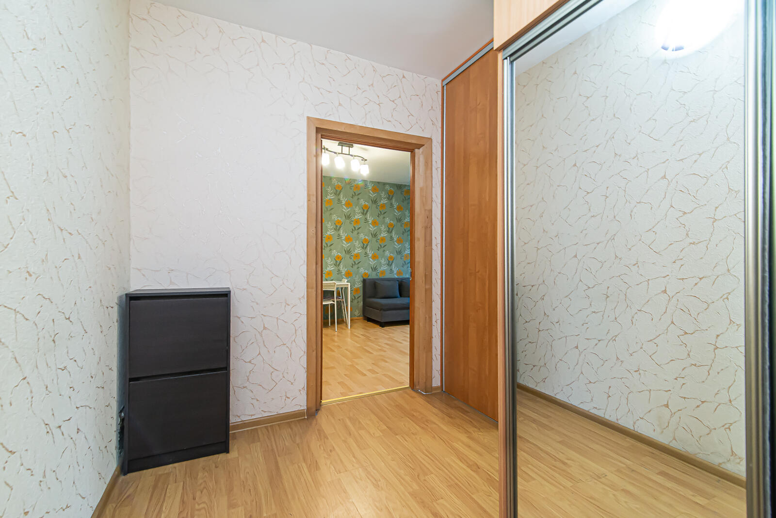 - Išplanavimas: virtuvė sujungta su svetaine su išėjimu į balkoną, miegamasis-vaikų kambarys, prieškambaris, didelis vonios kambarys, balkonas.