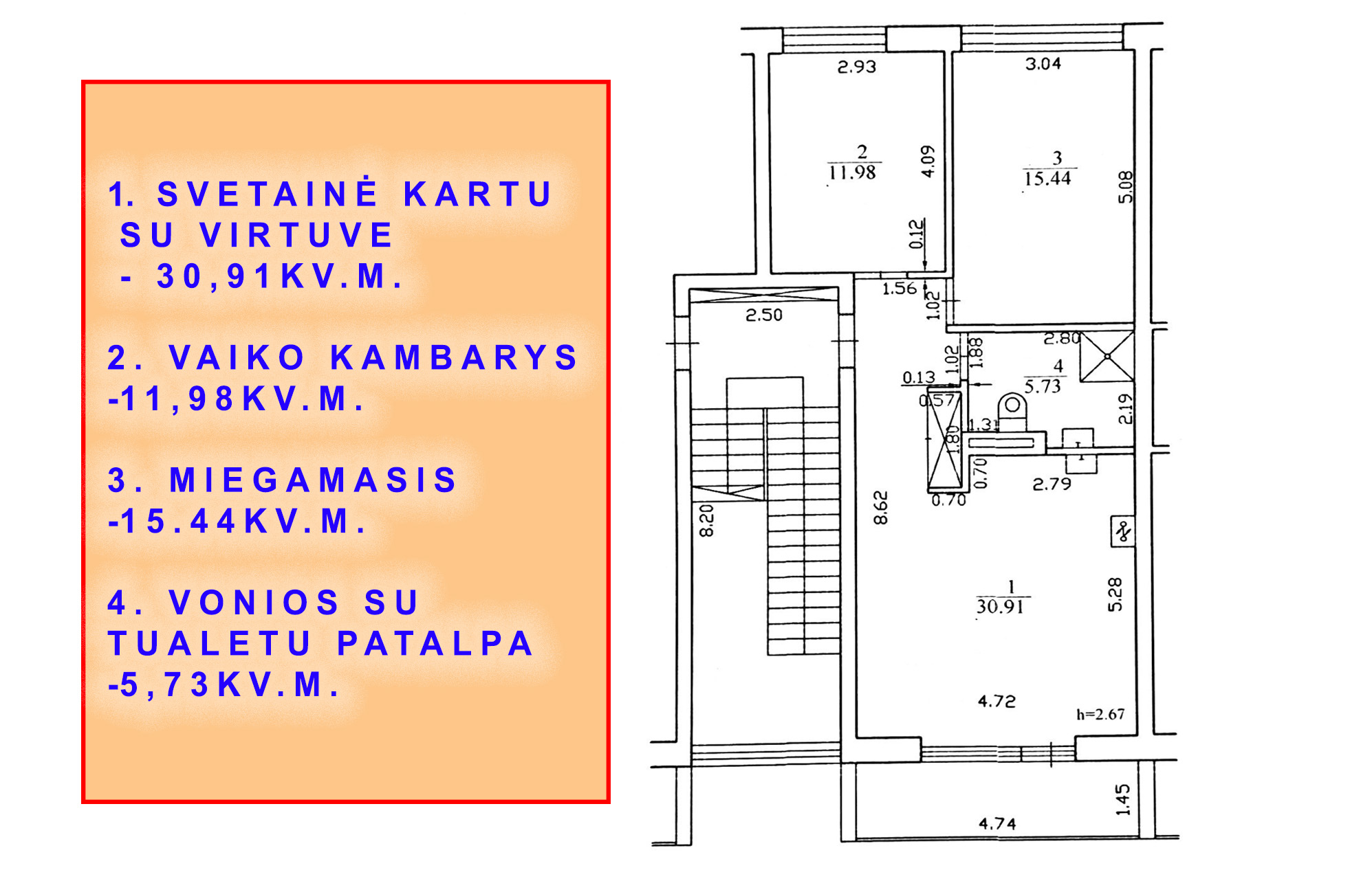 • Šildymo tipas – individuali centrinio šildymo sistema;
