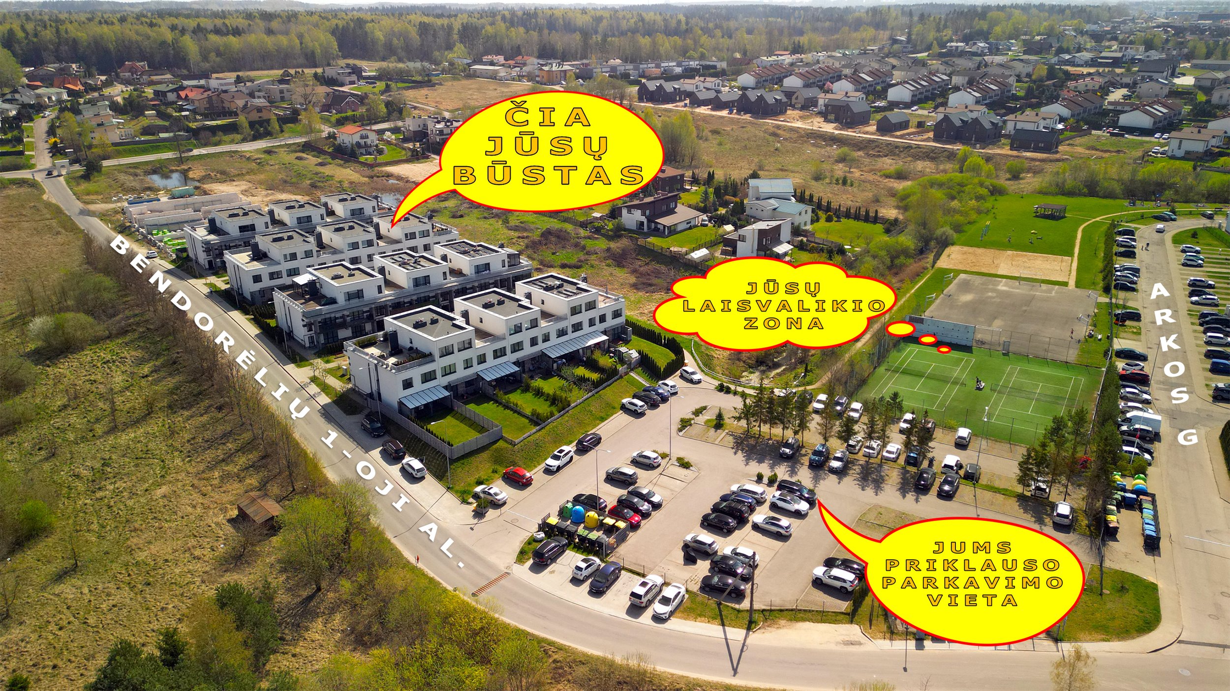 Aplinka taip pat nenusileidžia šio buto grožiui ir praktiškumui. Čia visada rasite kaip turiningai praleisti savo laisvalaikį - aplink gausu miškų, tyvuliuoja ne vienas ežeras. Vos už poros šimtų metrų rasite Bendorėlių teniso kortus. Puikiai išvystyta infrastruktūra patenkins visus šiuolaikinio žmogaus poreikius.