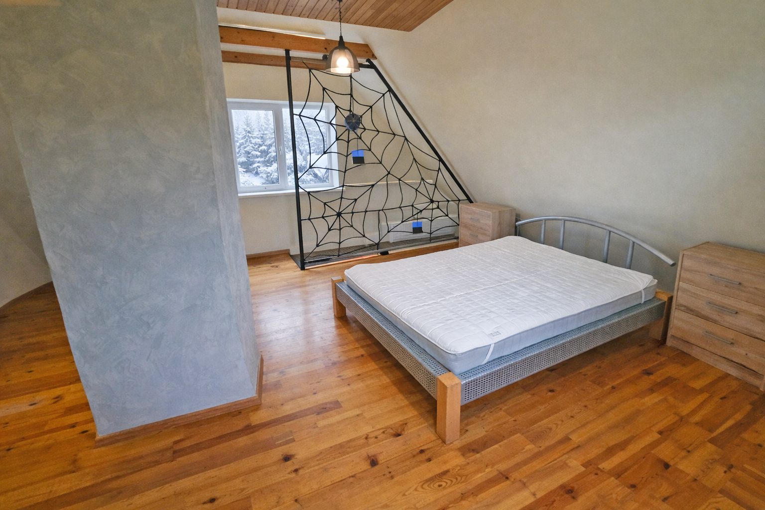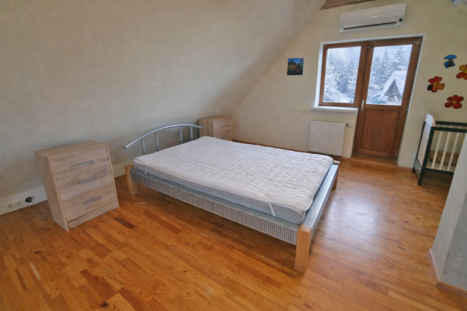 Antrame namo aukšte yra miegamasis, tualetas, vonia, balkonas.
