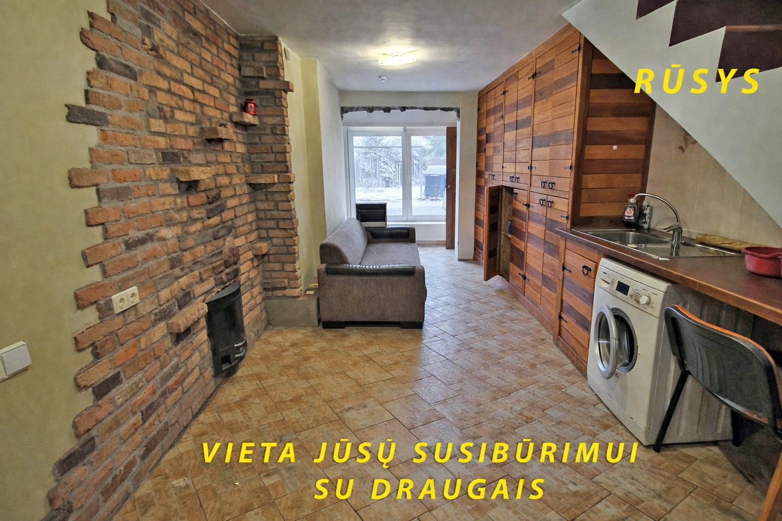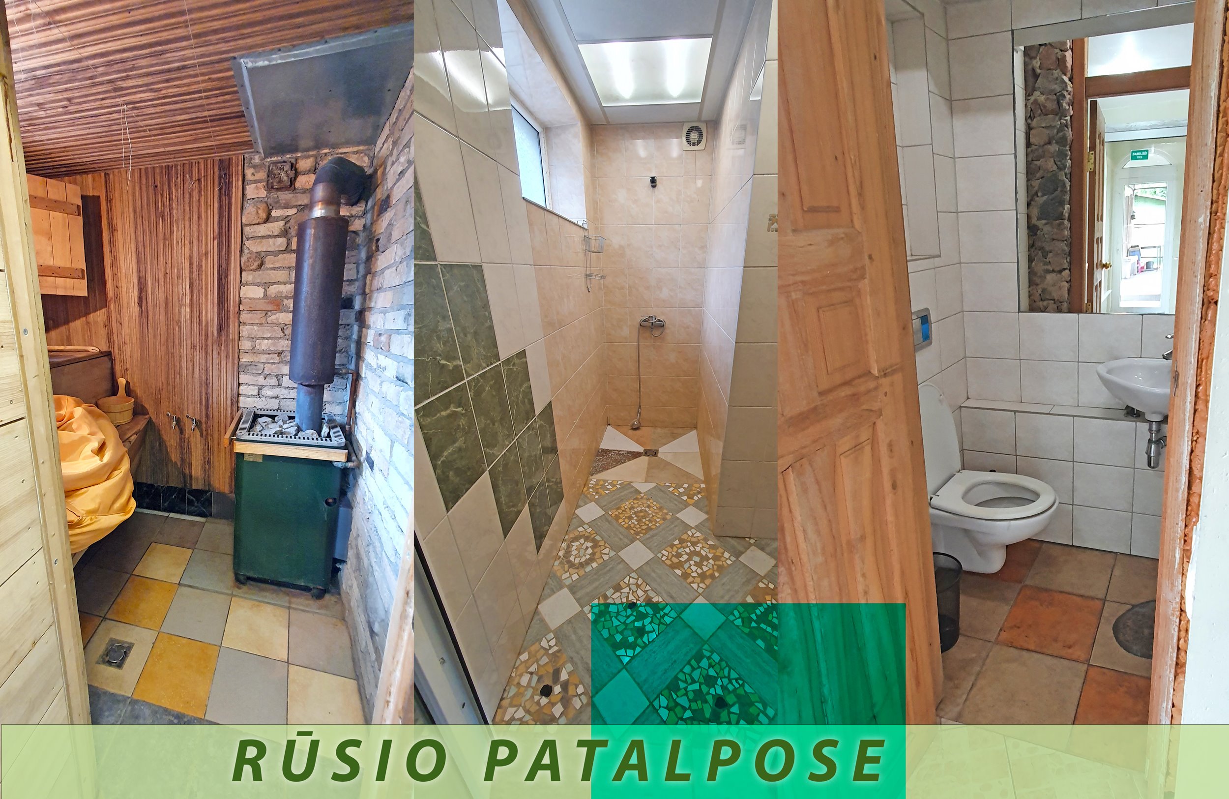 Rūsyje įrengtas tualetas, Mini virtuvė, pirtis, dušas.