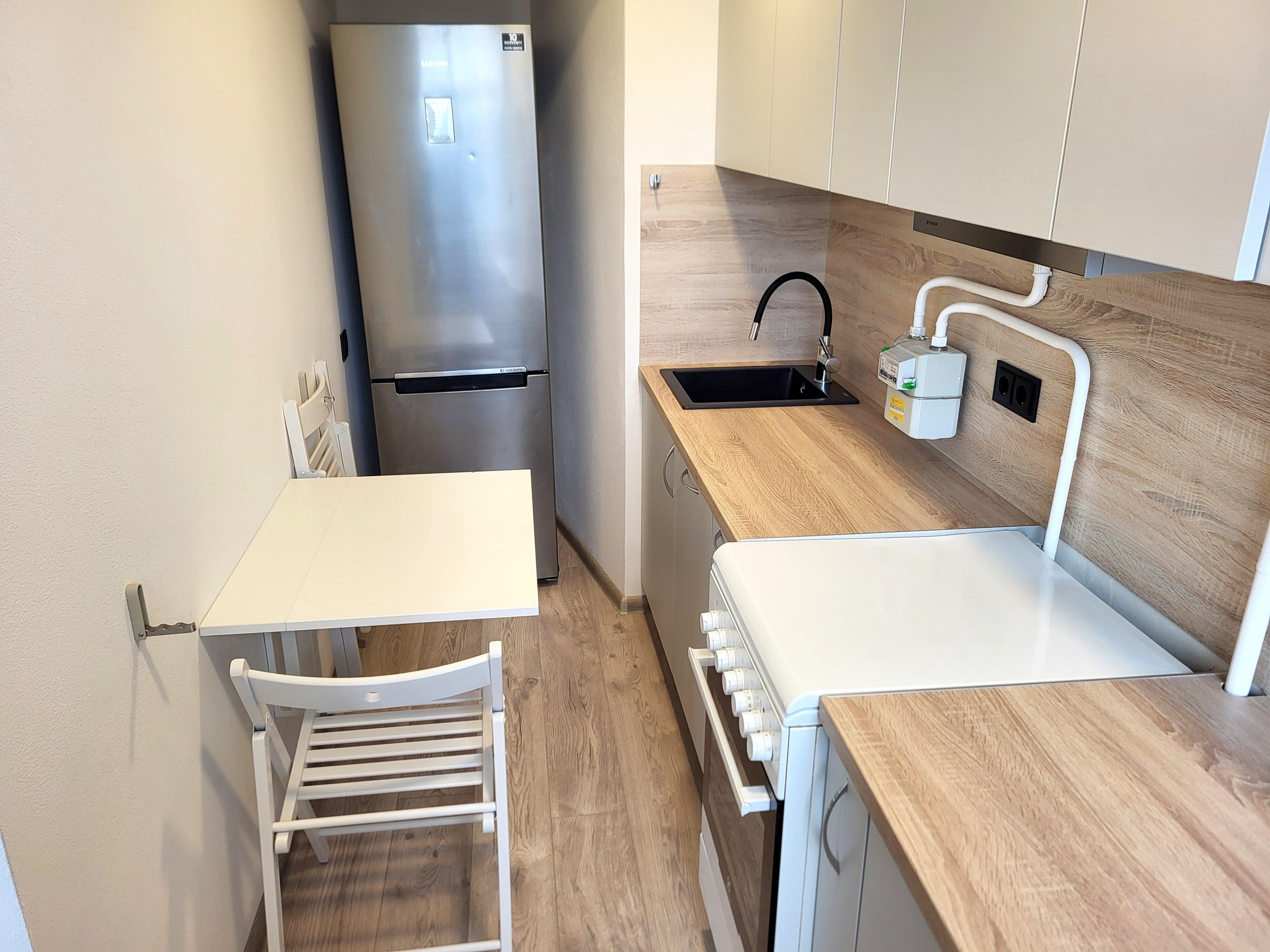 - Miegamasis kambarys (SU SPINTA VEIDRODINĖMIS DURIMIS, MIEGAMOJI LOVA),svetainė , nauji virtuvės baldai.