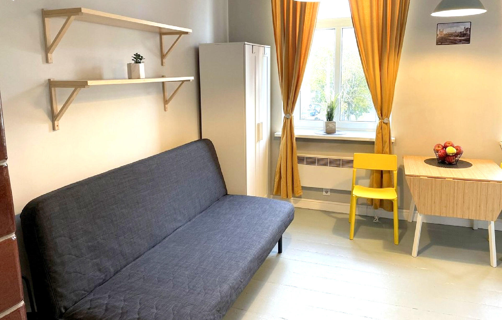Šalia Žaliojo tilto, nuomojamas jaukus, senojo Vilniaus dvasia alsuojantis vieno kambario butas aukštomis lubomis ir erdviu prieškambariu Vilniaus centre.