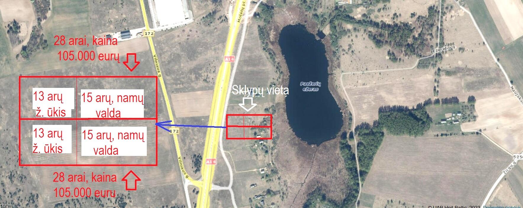 Šalia Moletų pl., prie Paežerių ežero parduodami 2 namų valdos sklypai kartu su 2-iem žemės ūkio paskirties sklypai.
