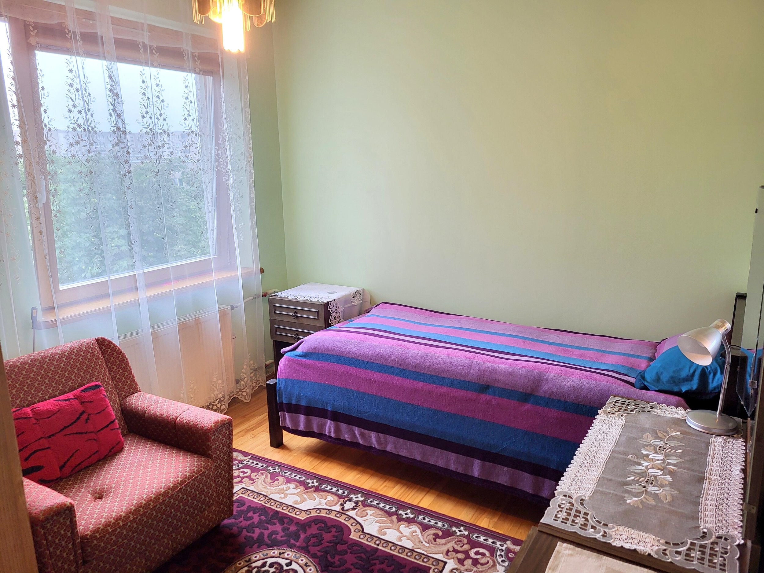 Justiniškėse, Taikos gatvėje, nuomojami 2 kambariai 3-jų kambarių bute. Butas randasi penktame aukšte iš 5-ių. Trečias kambarys priklauso kitai savininkei, kuri retsykiais būna namuose.