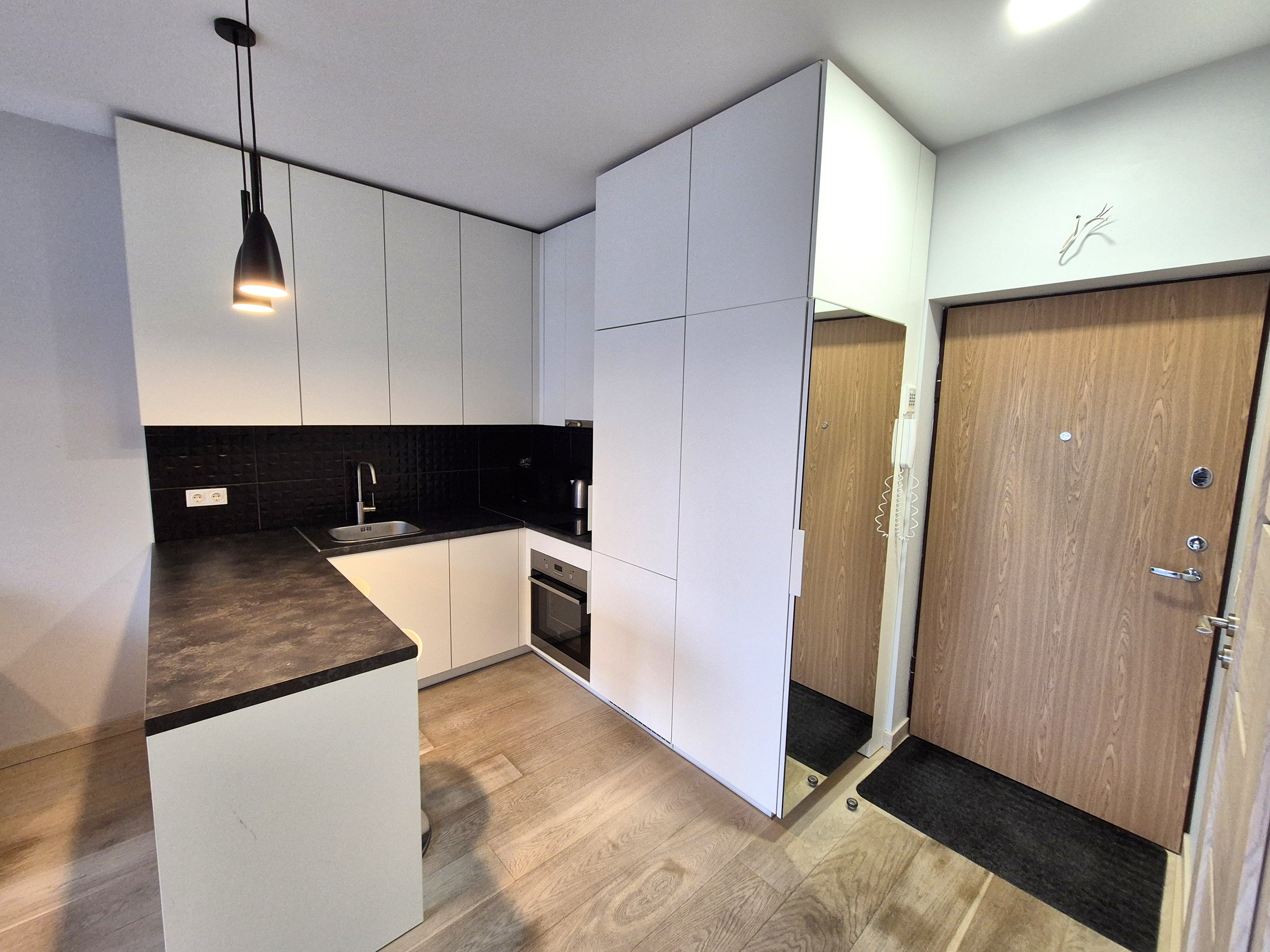 BUTAS PILNAI ĮRENGTAS!!! VIRTUVĖS KOMPLEKTAS !!! BALDAI IR BUITINĖ TECHNIKA,DIDELĖ TERASA-BALKONAS.