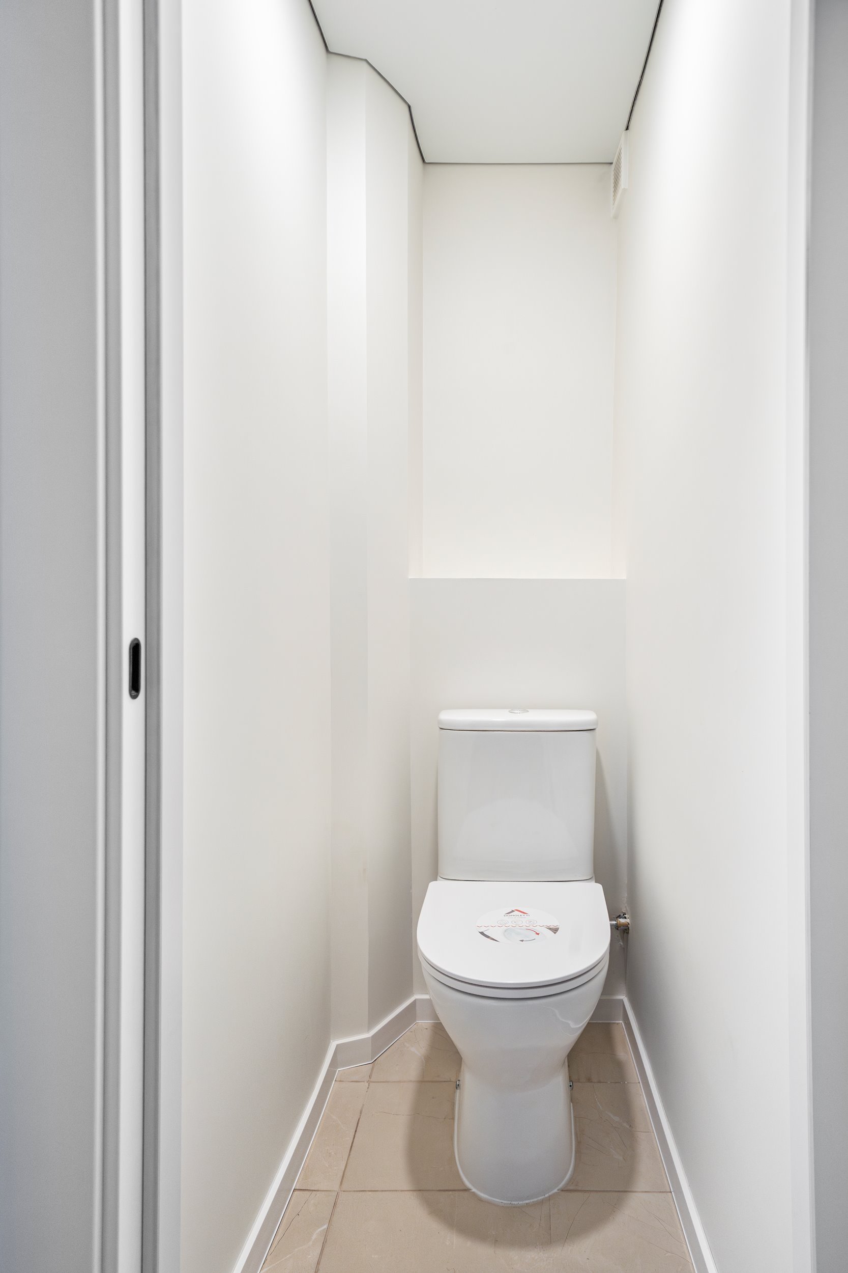 NAUJAS KLOZETAS SU LĖTAI NUSILEIDŽIANČIU DANGČIU.