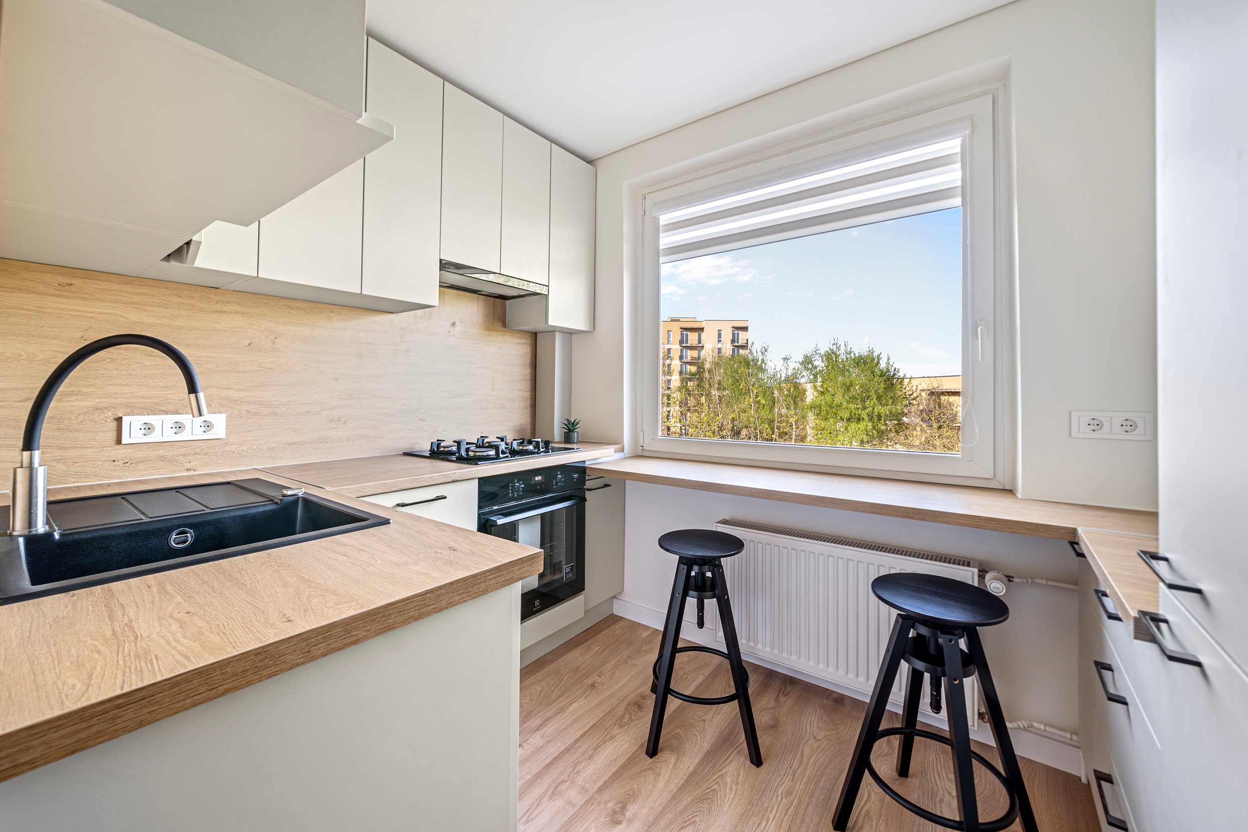 Butas parduodamas SU BALDAIS, VIRTUVĖS KOMPLEKTU SU INTEGRUOTA BUITINE TECHNIKA, ŠALDYTUVU, ORKAITE, KAITLENTE, INDAPLOVE,SKALBIMO - DŽIOVINIMO MAŠINA,SPINTELĖ.