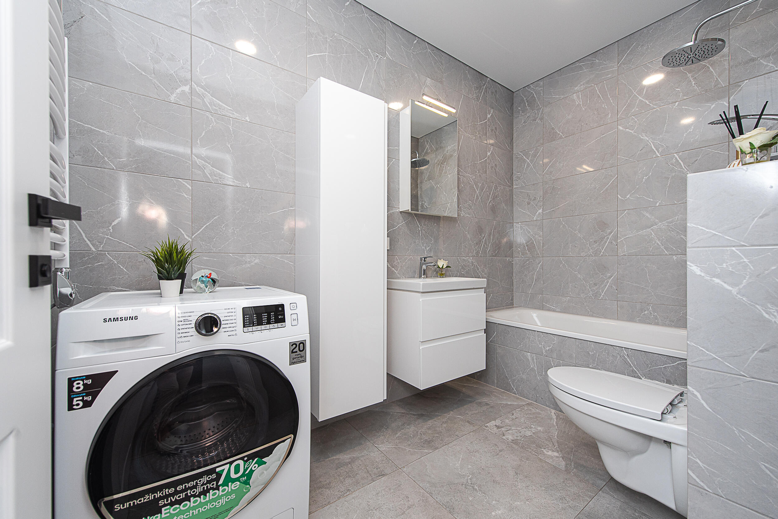 Į vakarų pusę.(Geras vaizdas pro langus) - Durys: ŠARVO (DVIEJŲ SPYNŲ); - LIFTAS - YRA PARKAVIMO VIETA (už atskirą kainą) KOKYBIŠKA VIRTUVĖ (spintelės su stabdymo mechanizmais, led pašvietimas) BUITINĖ TECHNIKA SAMSUNG. (Orkaitė dviejų durelių, savaime išsivalanti funkcija, šaldytuvas su automatiniu atitirpimu, indukcinė kaitlentė, indaplovė, atskiros skalbimo ir džiovinimo mašinos (džiovinimo mašinos nuotraukose dar nėra)) VOKIŠKI MAIŠYTUVAI HANSGROHE, KLOZETAS SU LĖTAI NUSILEIDŽIANČIU DANGČIU. KOKYBIŠKOS UŽUOLAIDOS. YRA VIRTUVINIS STALAS SU KĖDĖMIS. (nuotraukose dar nėra)