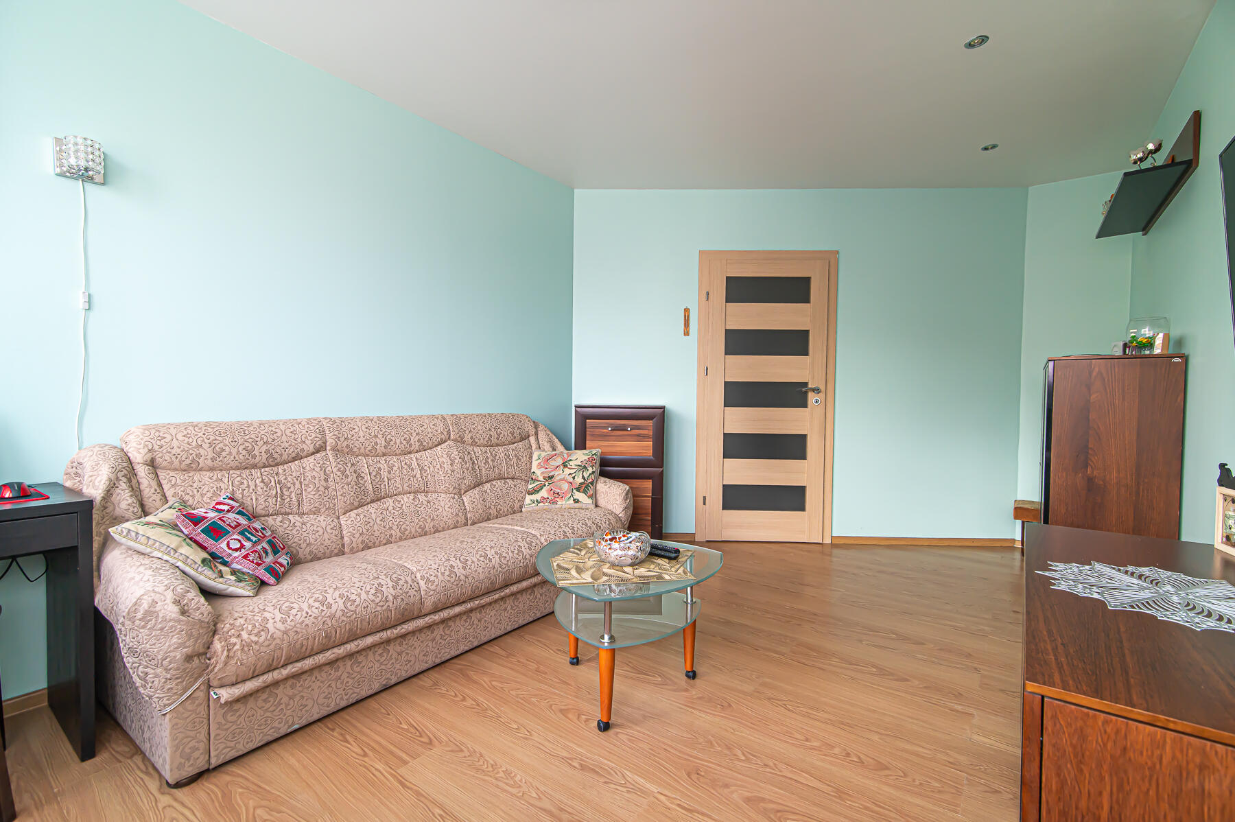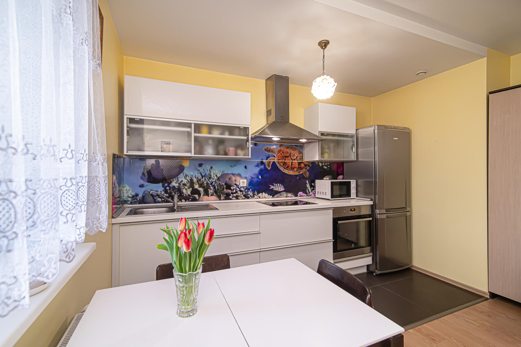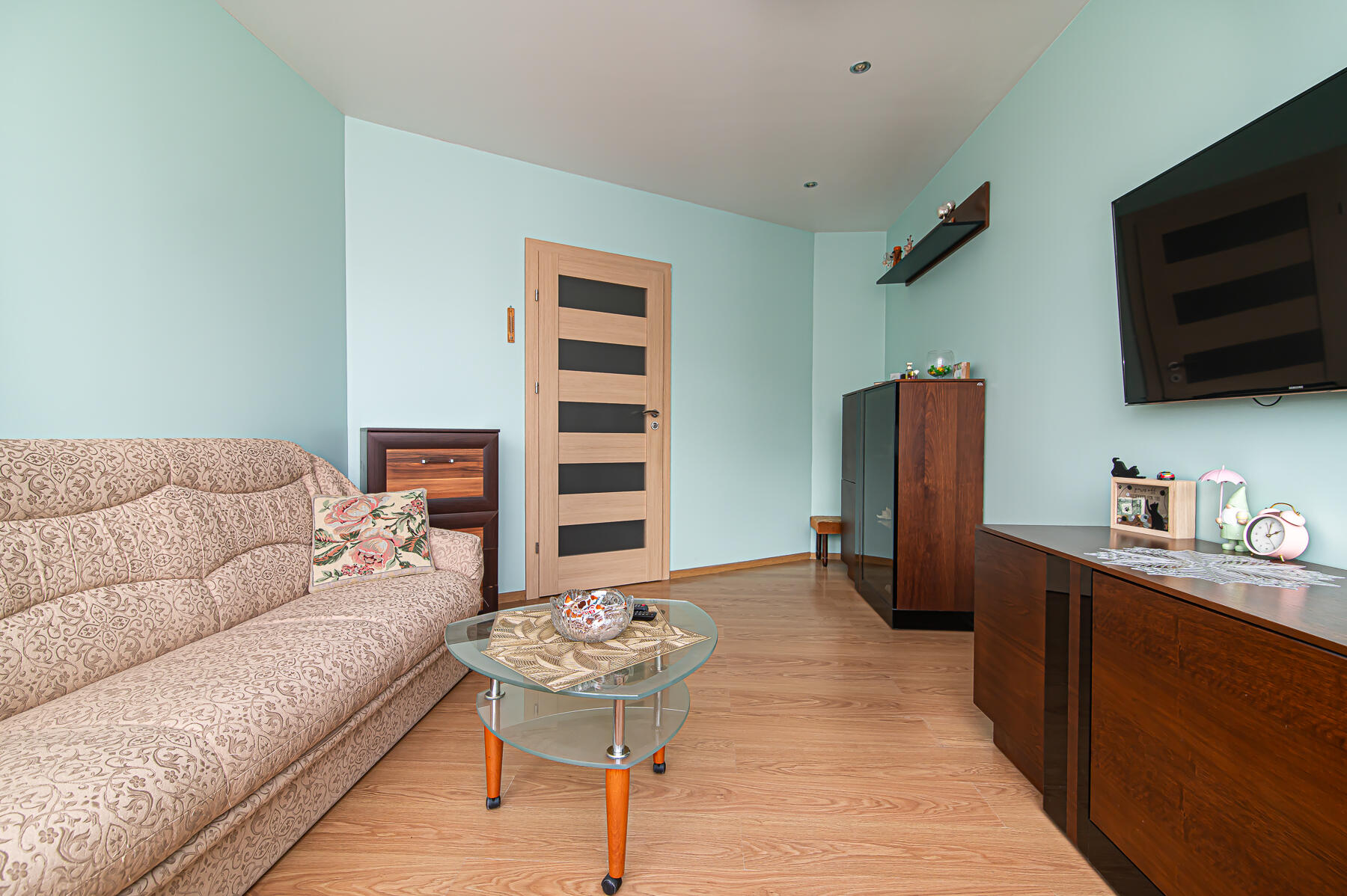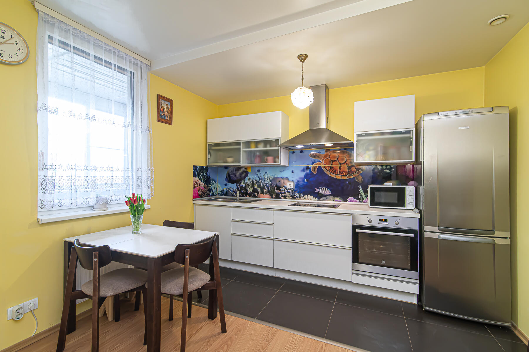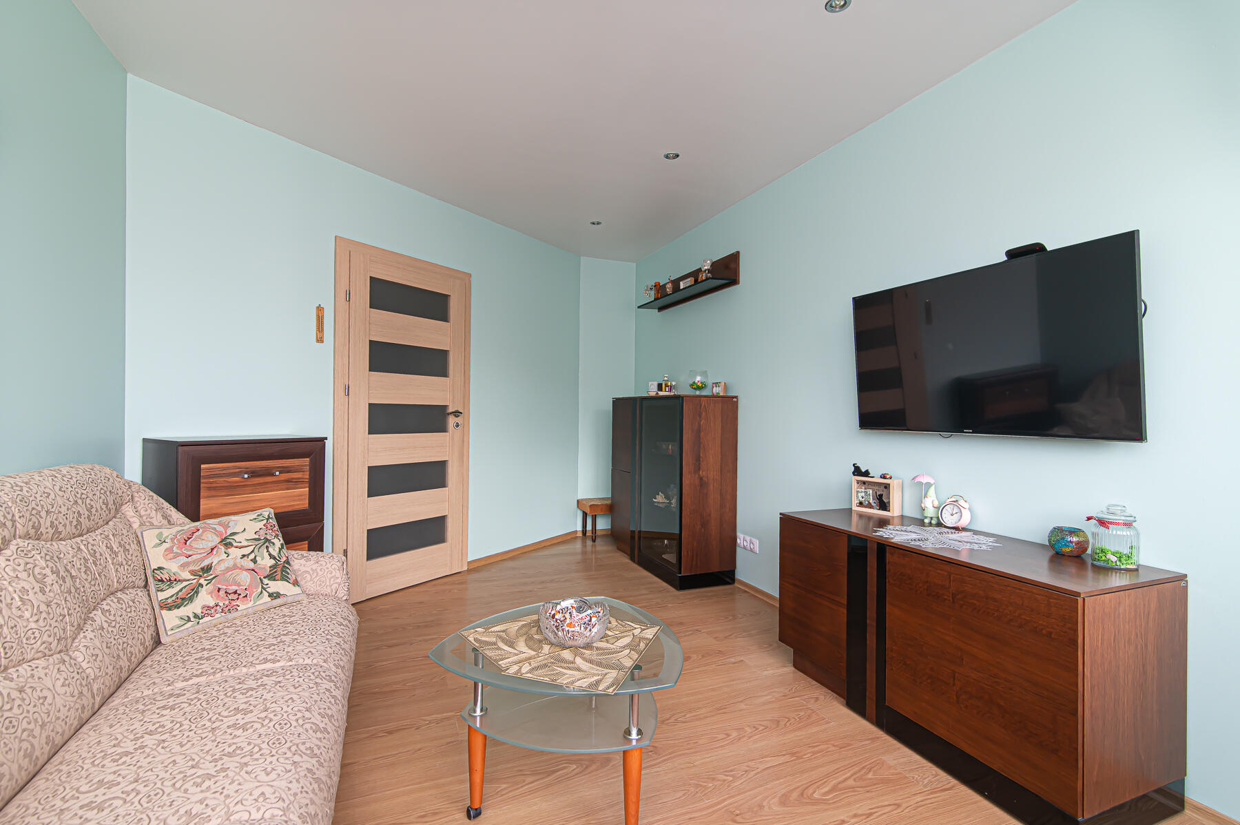 Butas parduodamas SU VIRTUVĖS KOMPLEKTU SU INTEGRUOTA BUITINE TECHNIKA, ŠALDYTUVU, SKALBIMO MAŠINA, VISAIS NUOTRAUKOSE MATOMAIS BALDAIS.