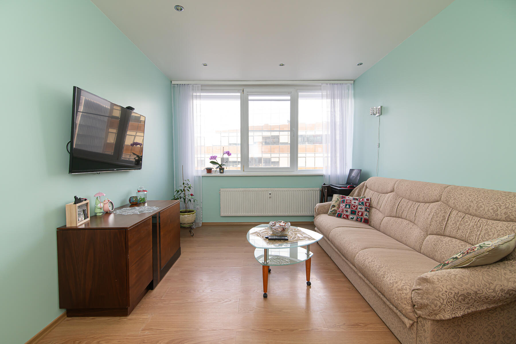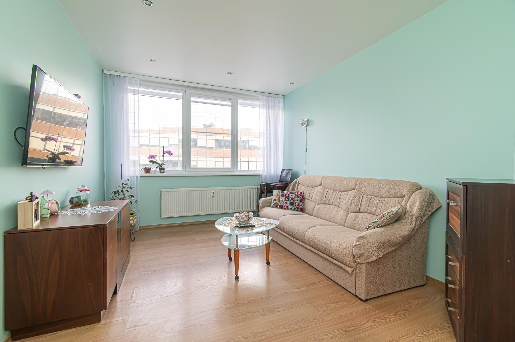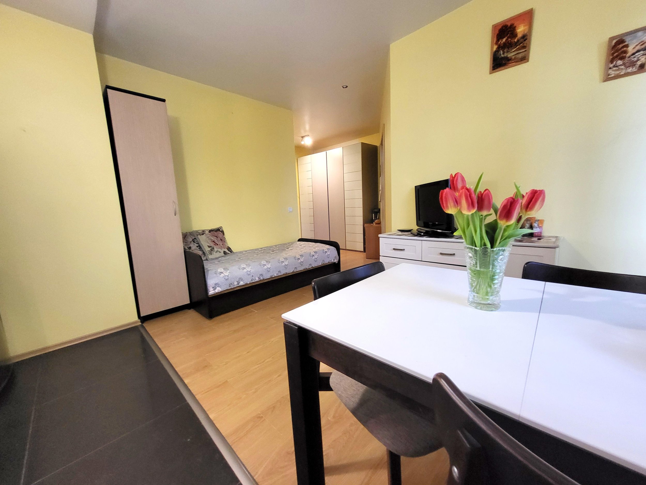 - Išplanavimas: Kambarys su virtuve, atskiras didelis kambarys, erdvus vonios kambarys su wc, koridorius, įstiklintas balkonas.