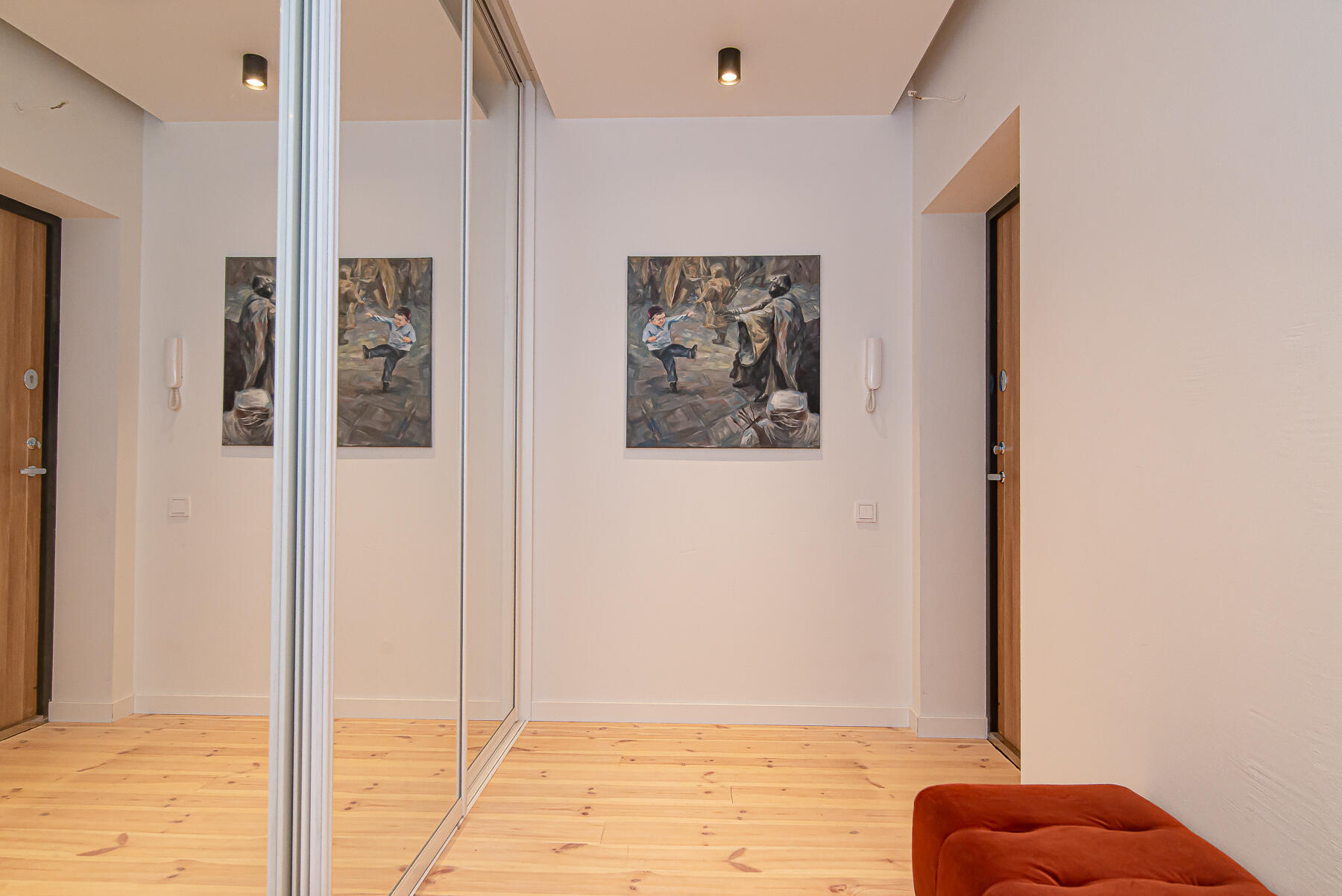 -- Prieškambaris su erdve sienine spinta;