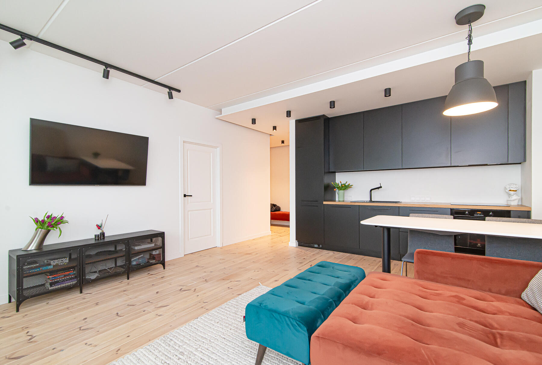 -- Parduodamas su visais baldais ir buitine technika, Televizoriumi ir robotu/siurbliu;