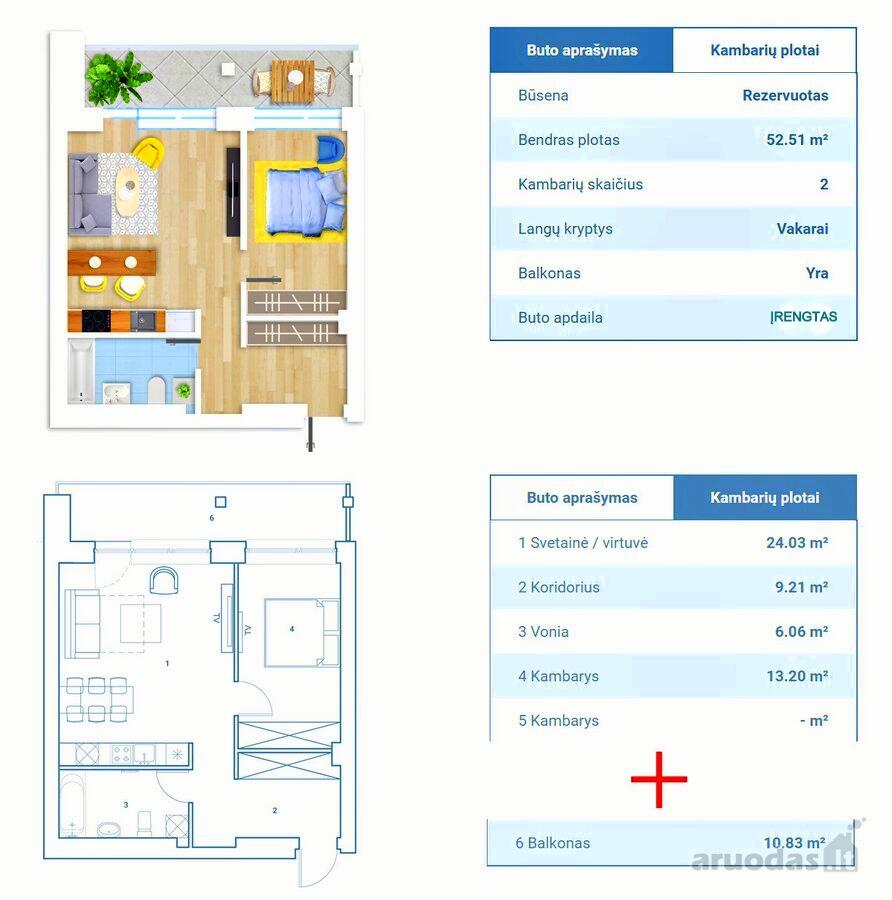 • Kambarių skaičius: 2