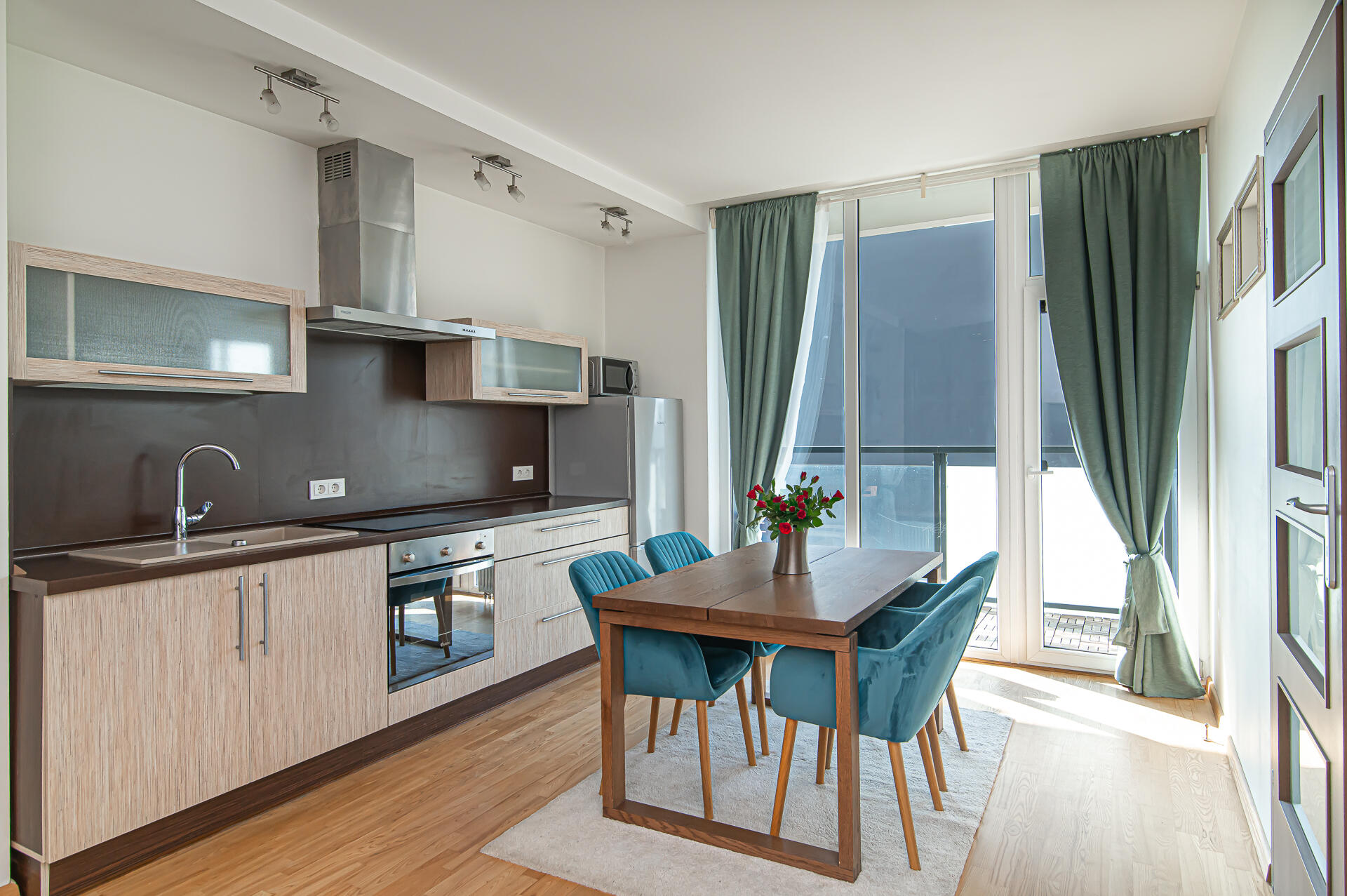 - Puikus susisiekimas su miesto centru ir kitais rajonais tiek automobiliu, tiek viešuoju transportu, netoli viešojo transporto stotelės.