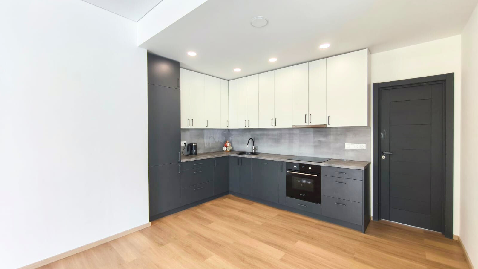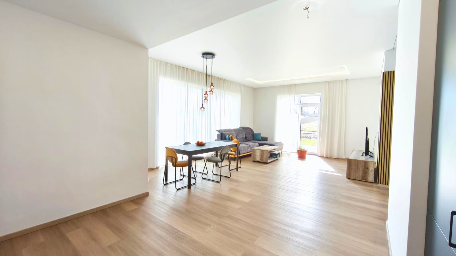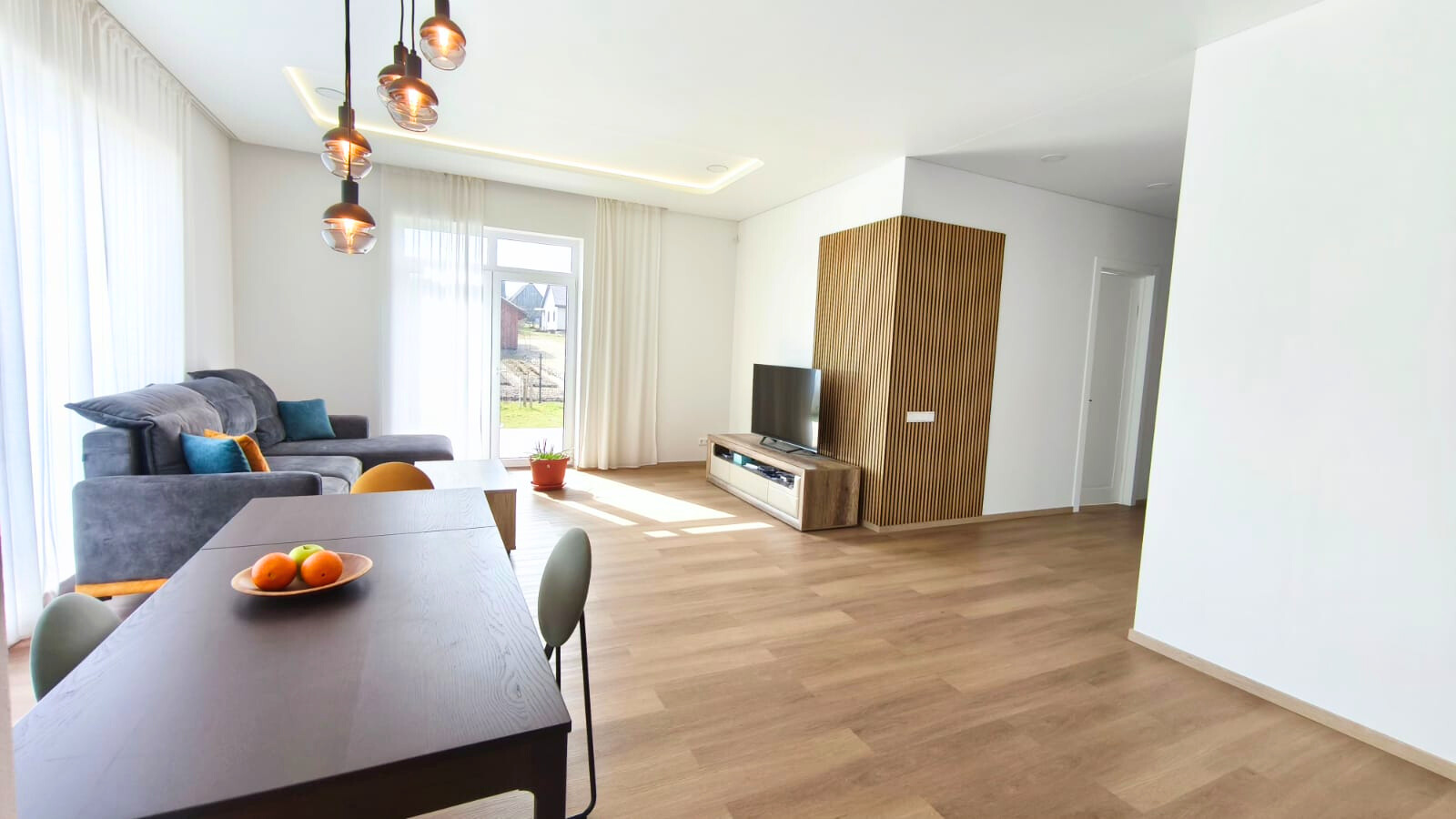 - virtuvės komplektas, įrengti sanmazgai, apšvietimas.