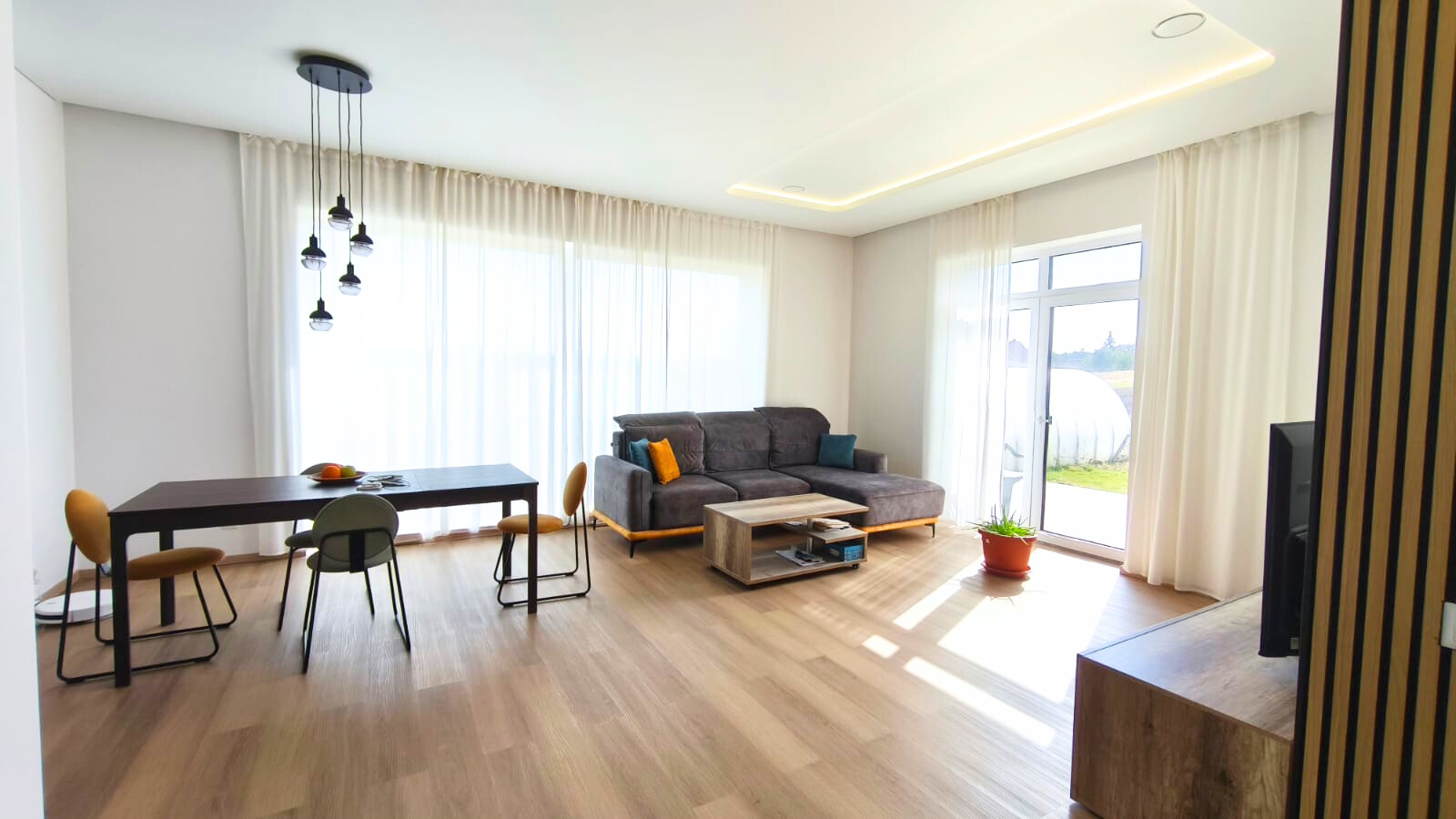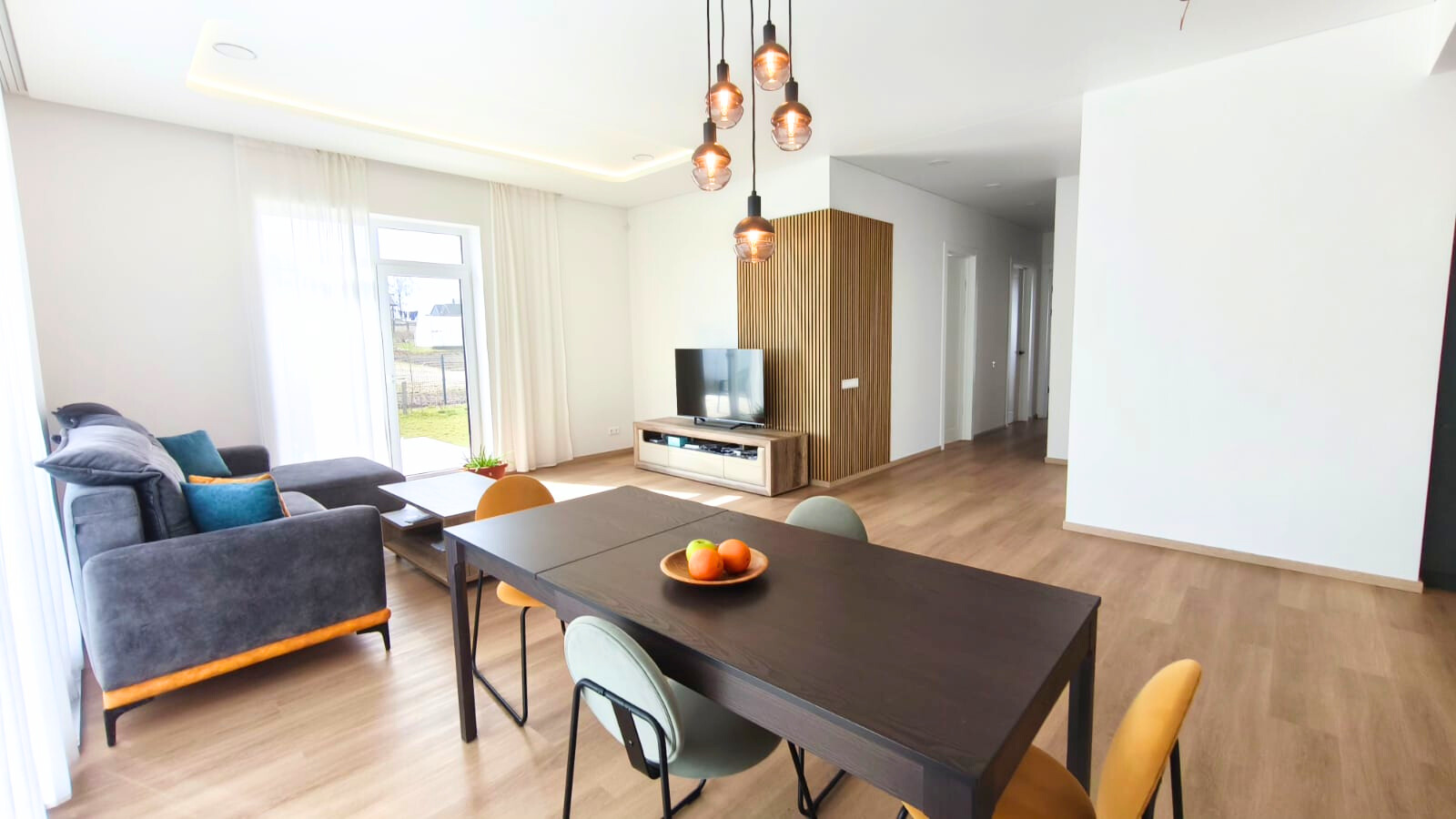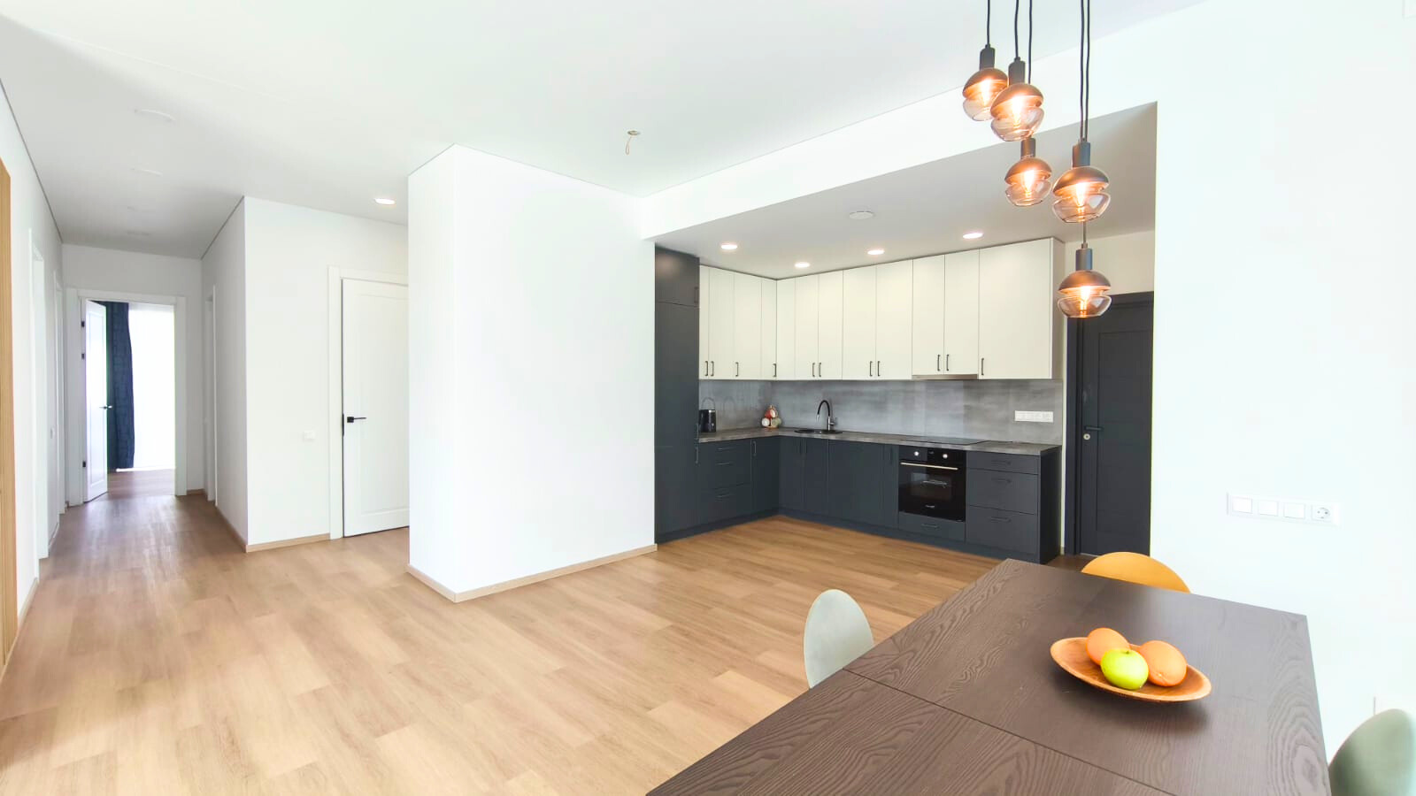 - virtuvės komplektas, įrengti sanmazgai, apšvietimas.