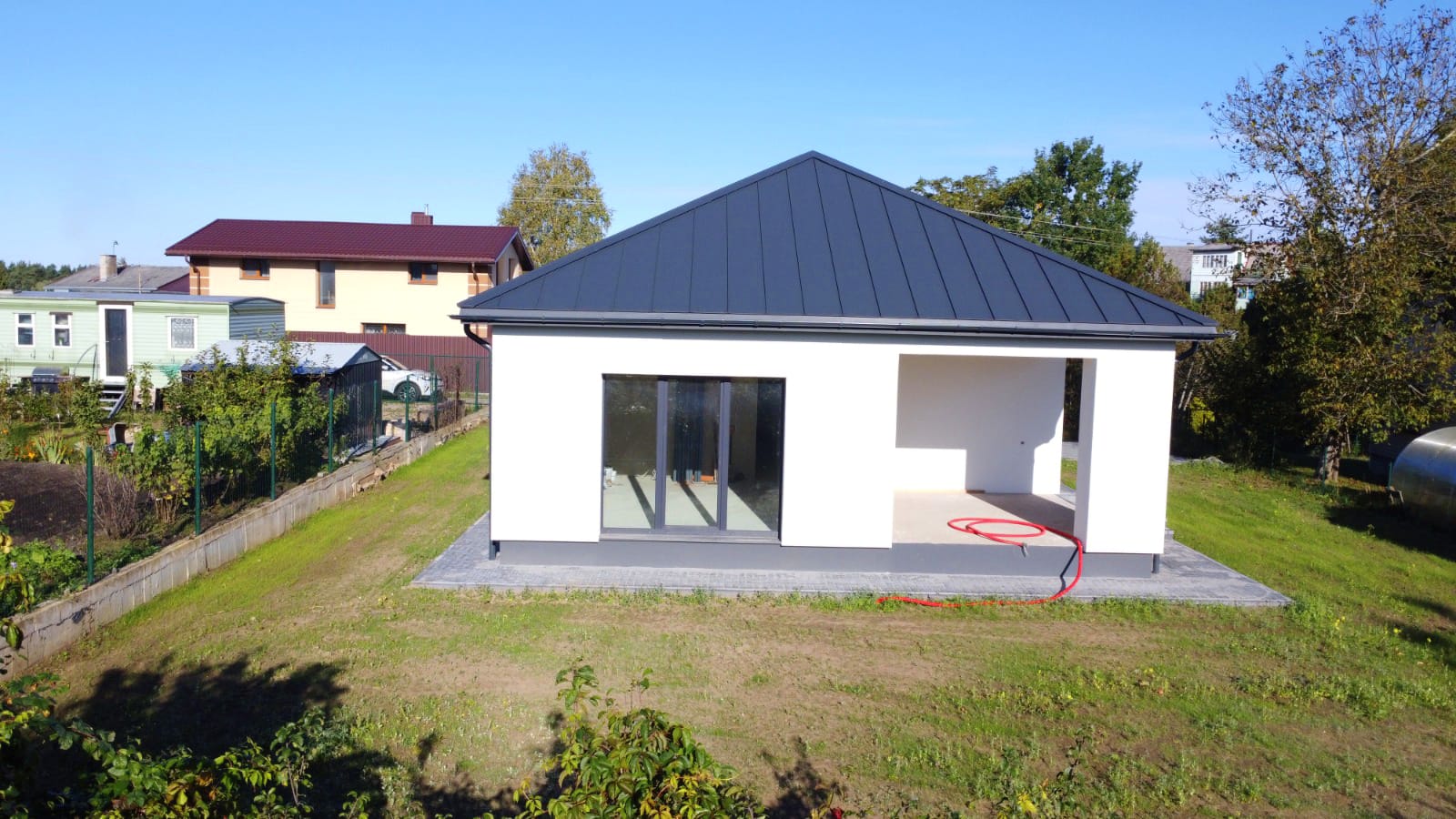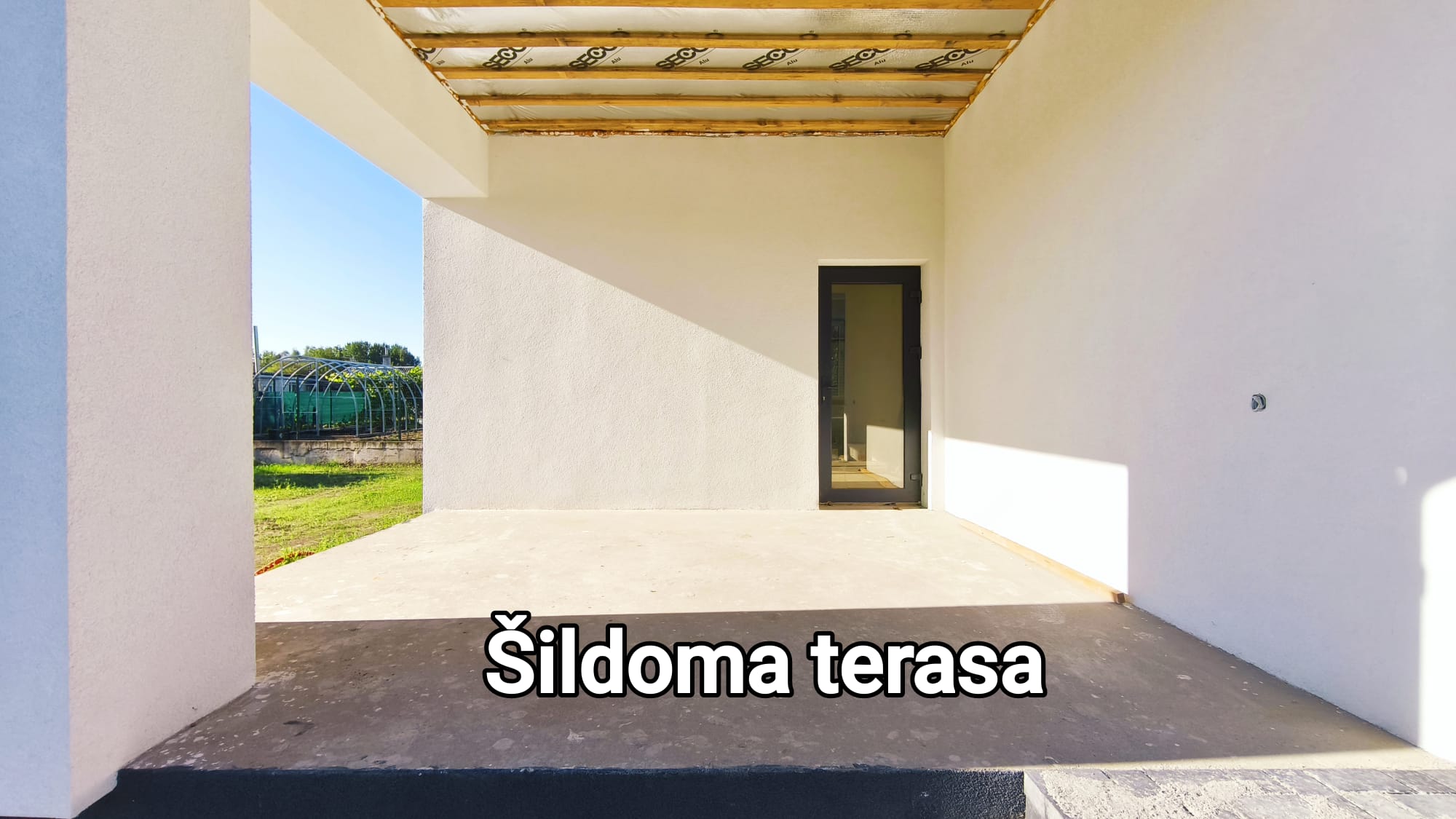 Padaryta erdvi terasa, kurioje išvedžiotas grindinis šildymas, sudėtos plytelės. Esant poreikiui šią terasą galimastiklinti, taip gaunat dar vieną – erdvią koridorių patalpą.
