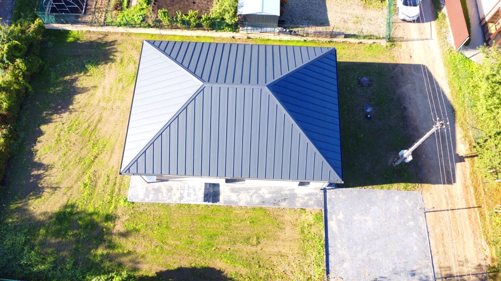 - Stogas keturšlaitis, medinės konstrukcijos karkasas uždengtas cinkuota, dažyta, skarda, apšiltintas 35cm akmens vata .