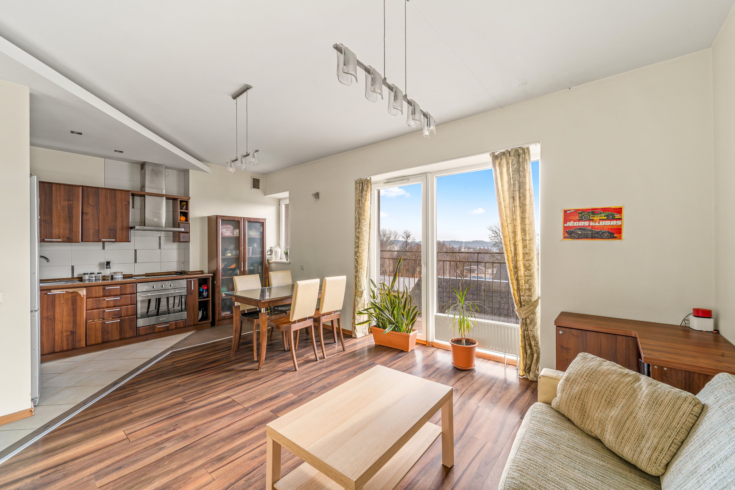 Patogus išplanavimas – erdvi svetainė sujungta su virtuve, 2 miegamieji kambariai, tualetas ir vonia kartu, erdvi lodžija, didelis balkonas.