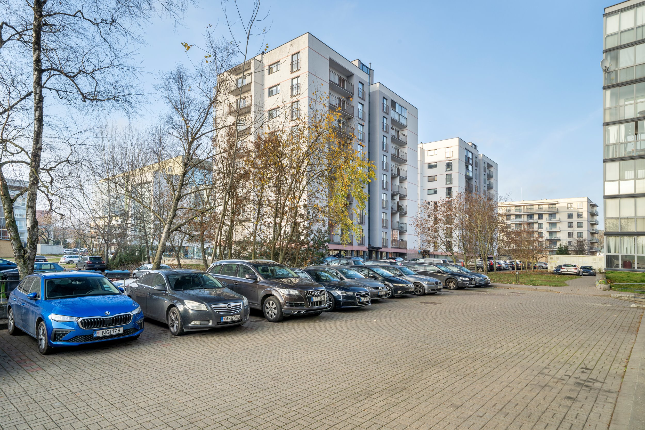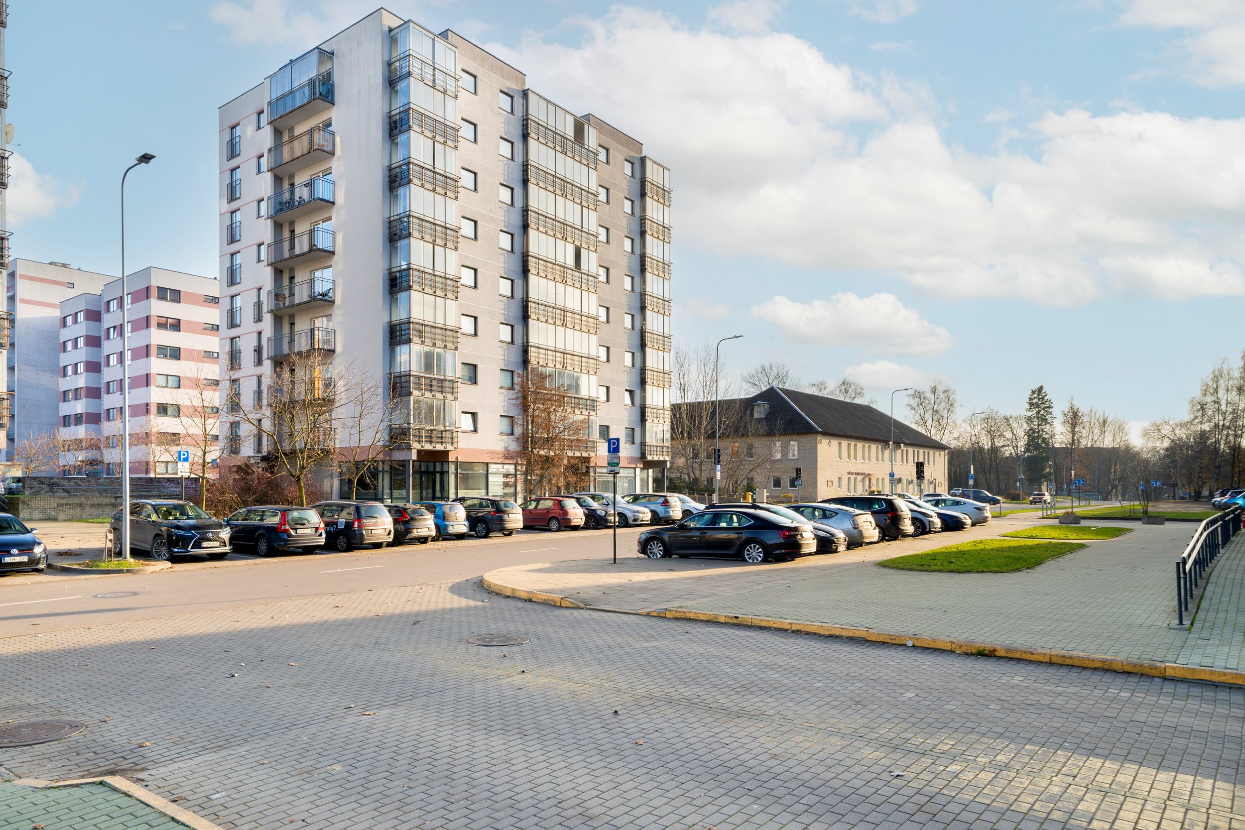 Erdvi nemokama automobilių stovėjimo aikštelė prie namo.
