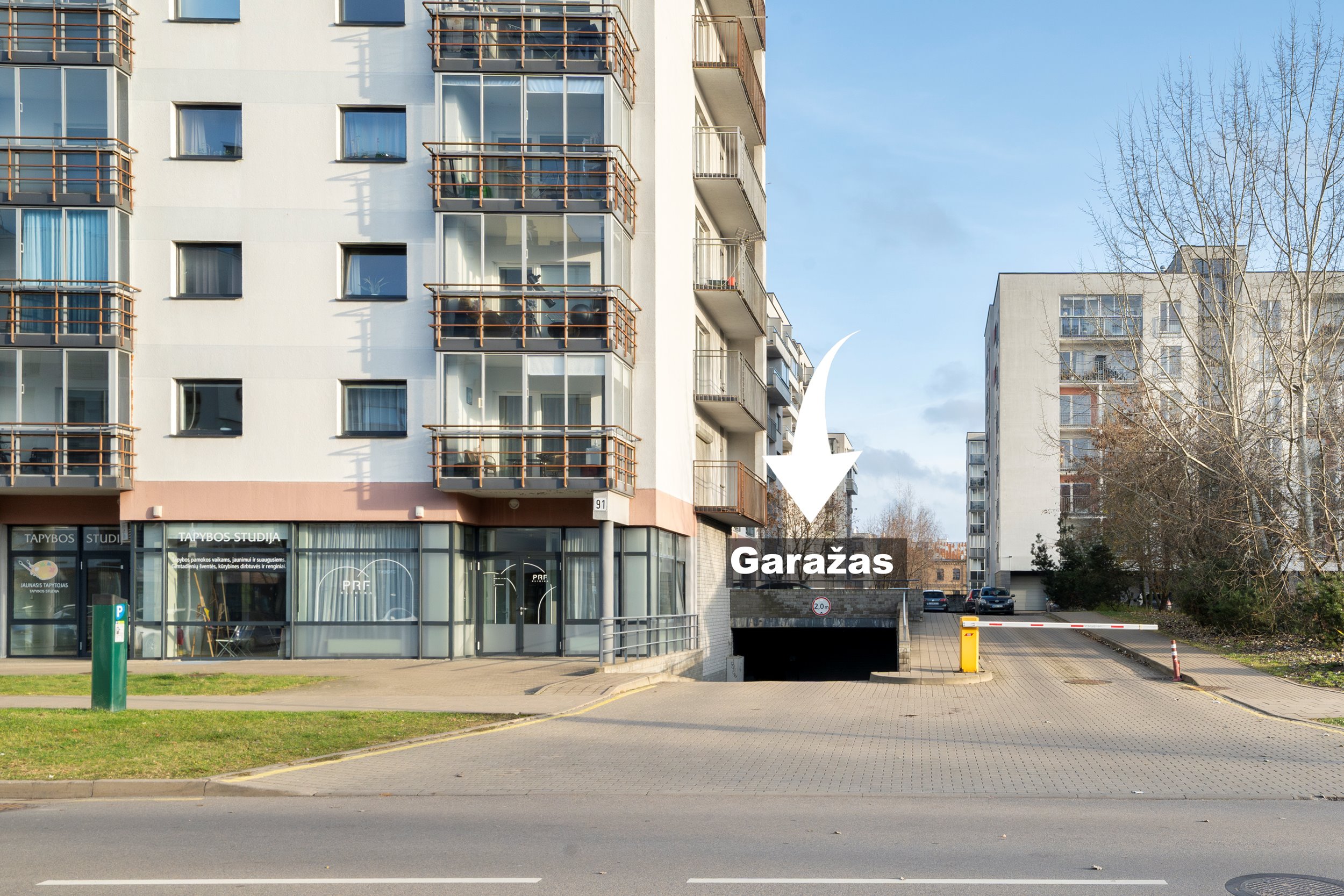 Bendras kiemas gyventojams už pakeliamo šlagbaumo.