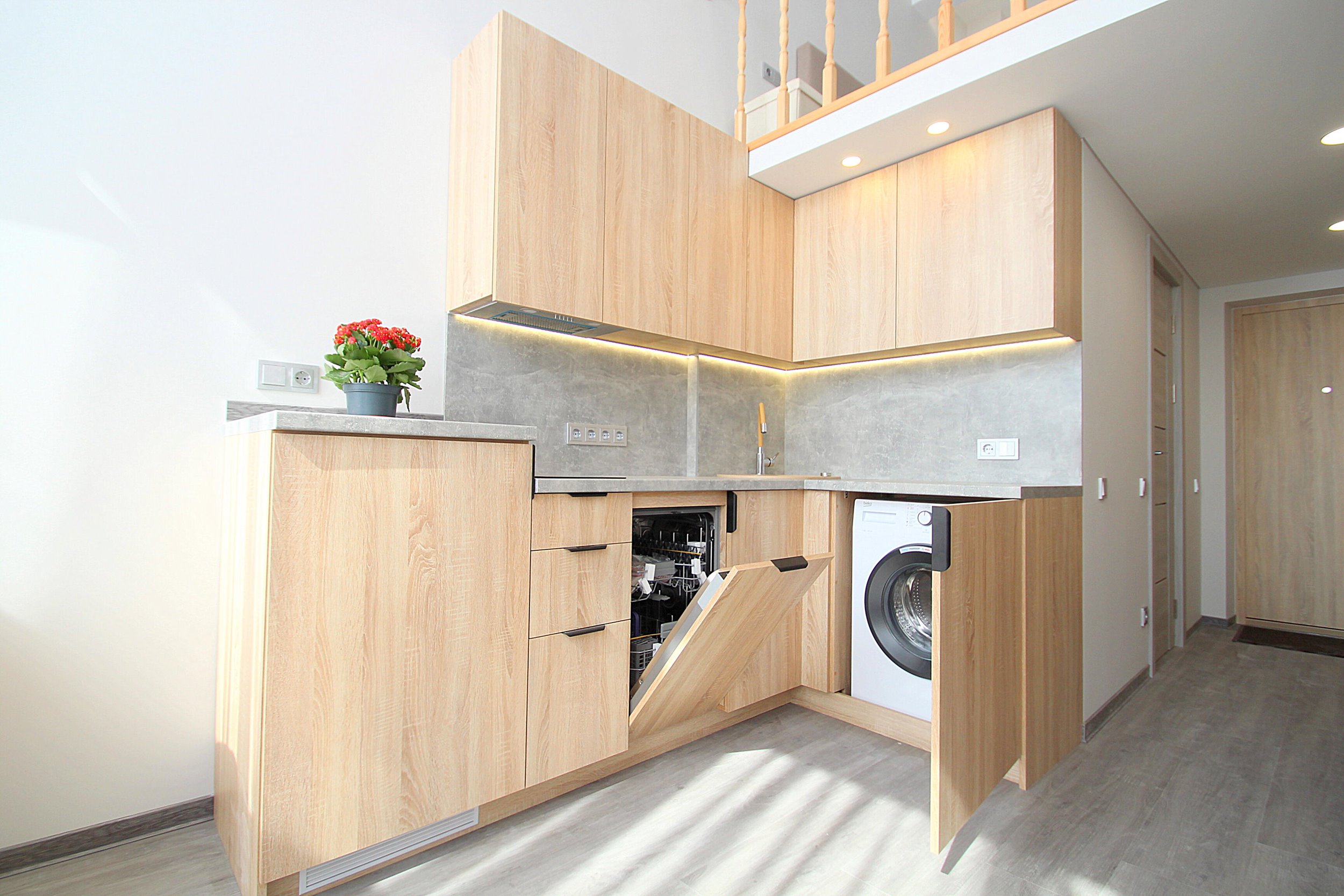 Loftas pasižymi funkcionalia virtuvės zona, sujungta su erdviu gyvenamuoju kambariu. Aukštos lubos suteikia butui papildomos erdvės pojūtį, o strateginė vieta garantuoja patogų susisiekimą tiek nuosavu, tiek viešuoju transportu su visais sostinės mikrorajonais.