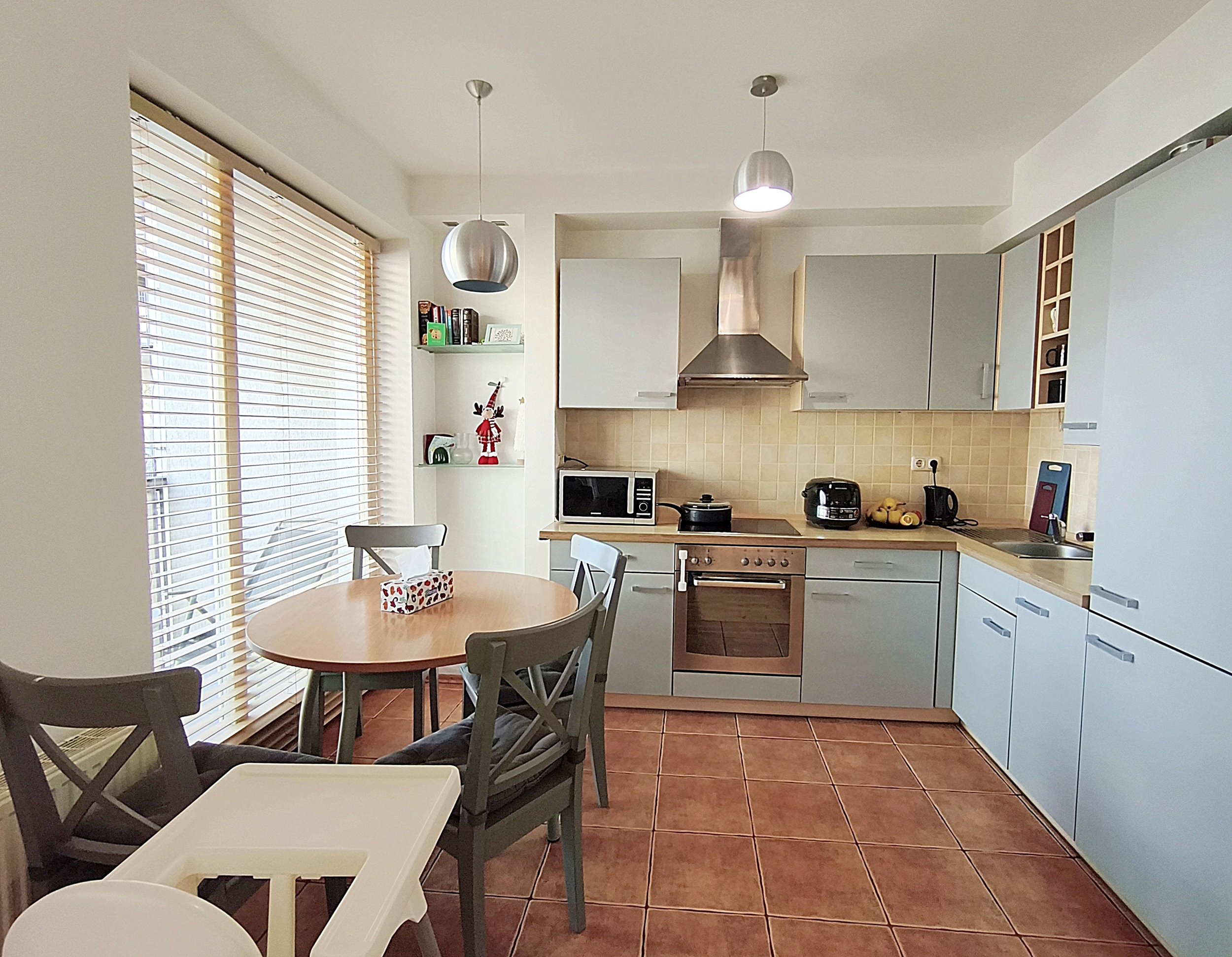 Vilniaus centre, vos 7 minutės pėsčiomis nuo Katedros, nuomojamas modernus 2 kambarių butas. Puiki vieta: Katedros aikštę pasieksite per 10 minučių, o Mindaugo tiltą ir upės krantinę – vos per 5 minutes.