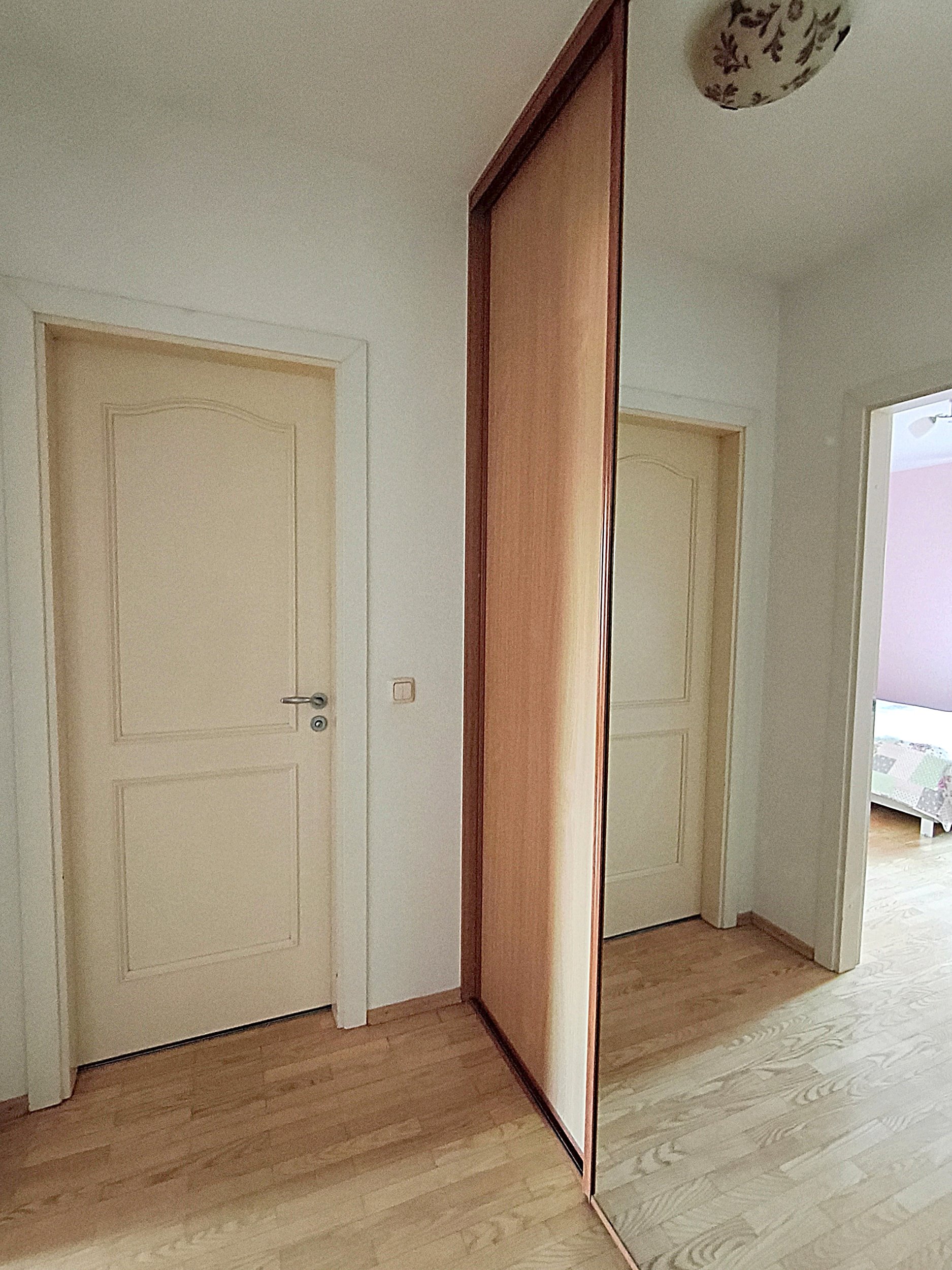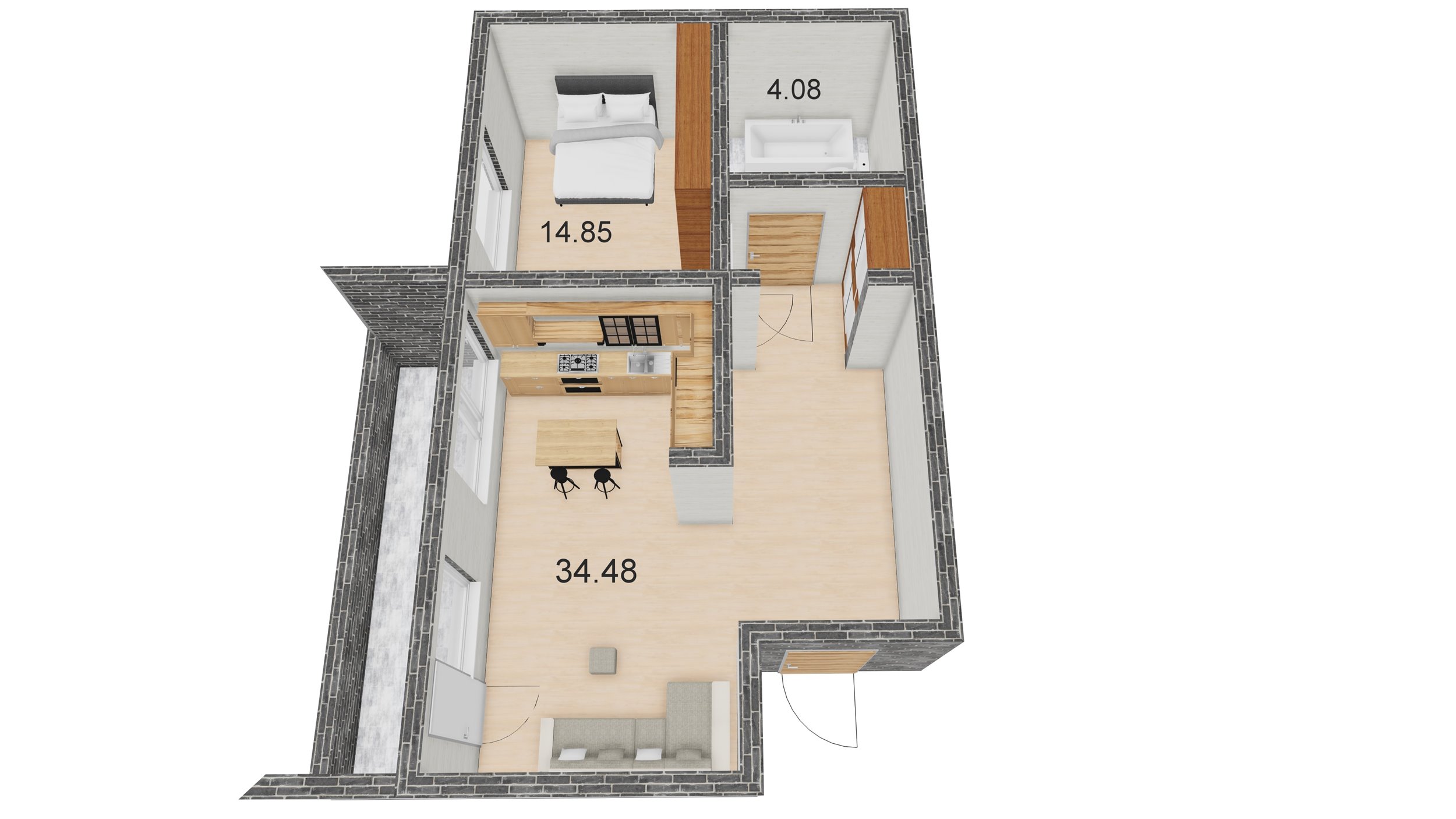 Butas funkcionaliai išplanuotas: svetainė sujungta su virtuve ir valgomuoju, erdvus miegamasis, vonios kambarys su tualetu. Šalia namo – daug vietos pasivaikščiojimams, vaikų žaidimų aikštelė. Galima deklaruoti gyvenamąją vietą.