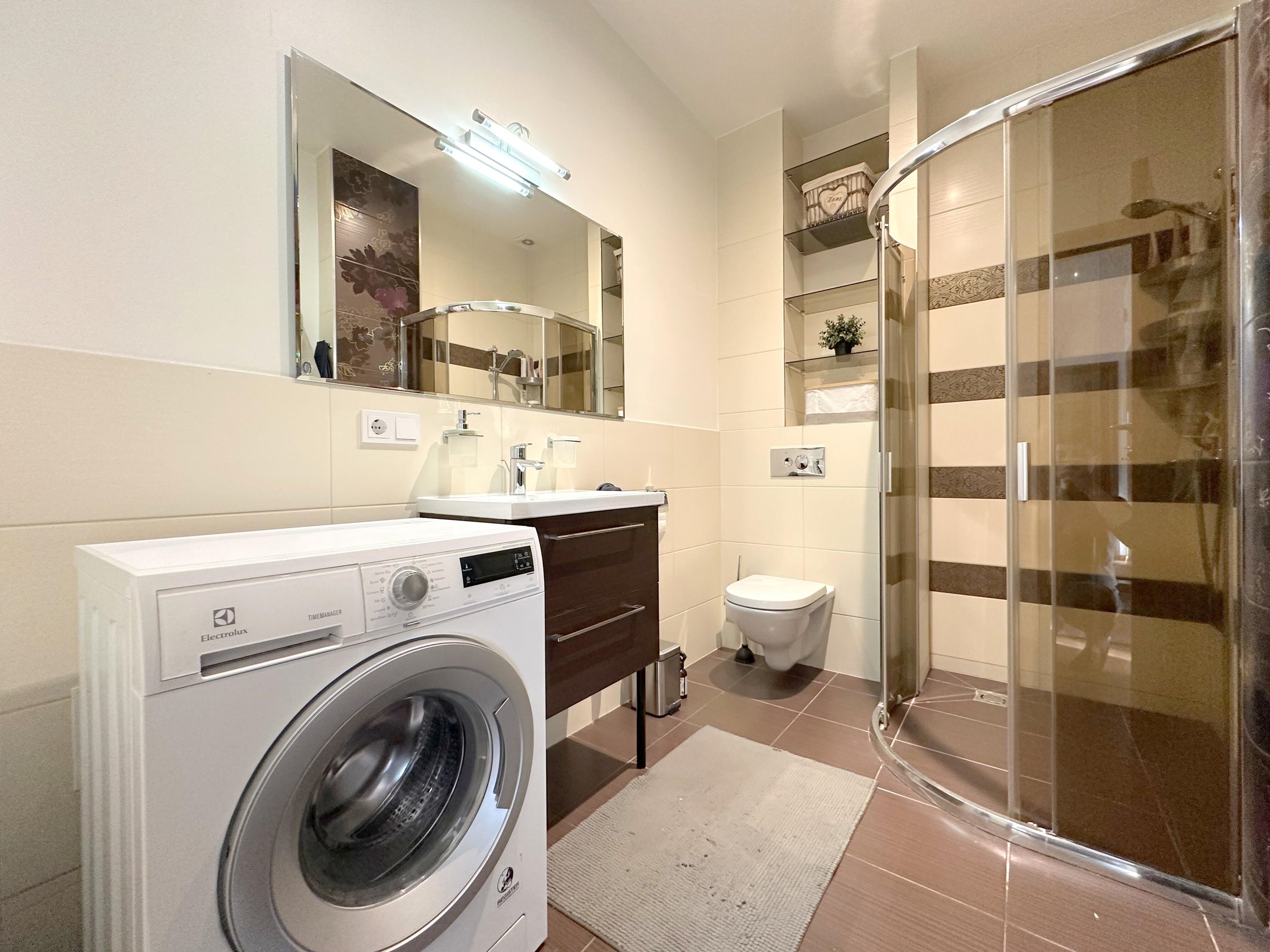 Bute yra visi reikalingiausi baldai, indaplovė, skalbimo mašina, šaldytuvas, viryklė ir t.t.