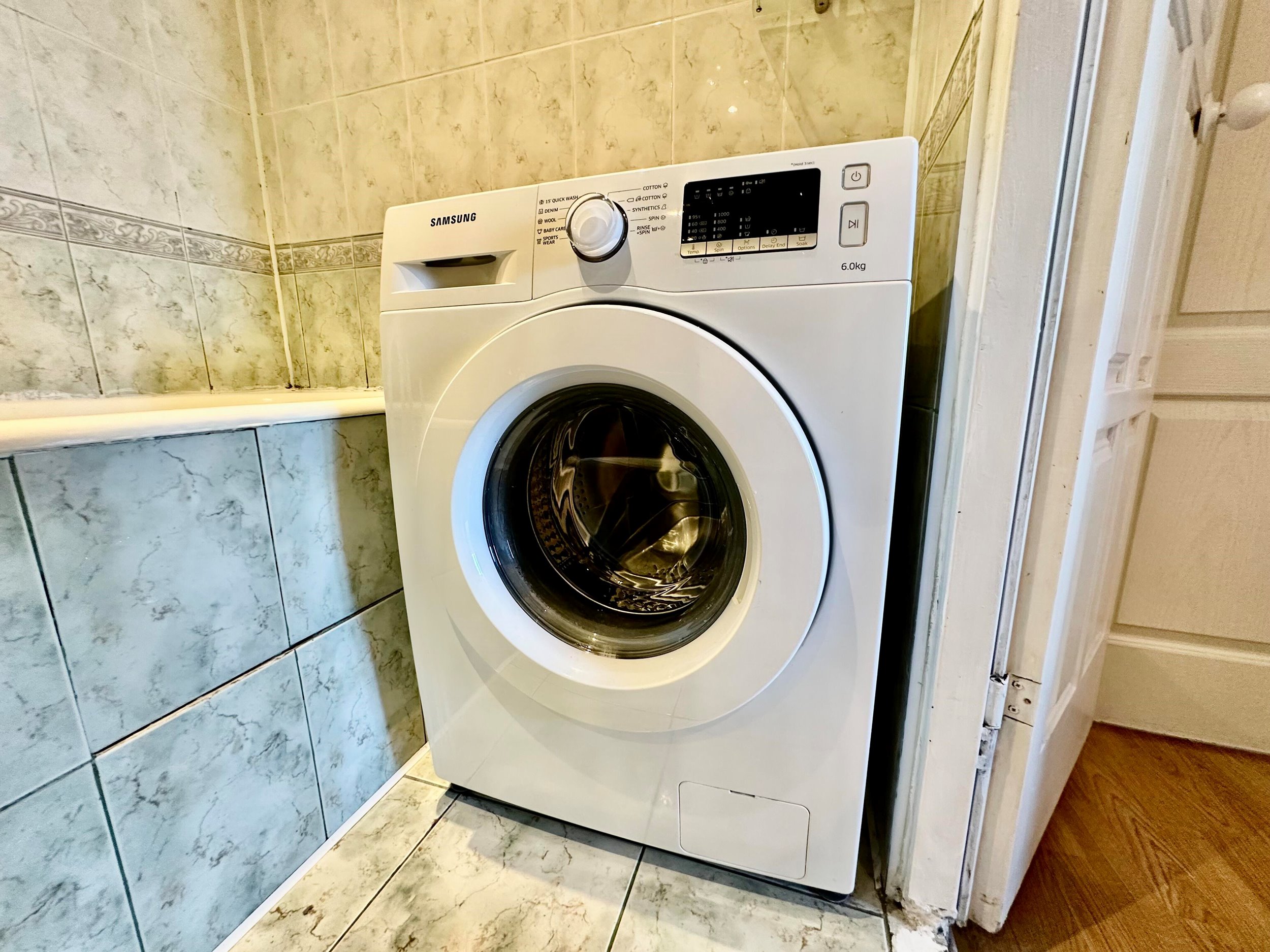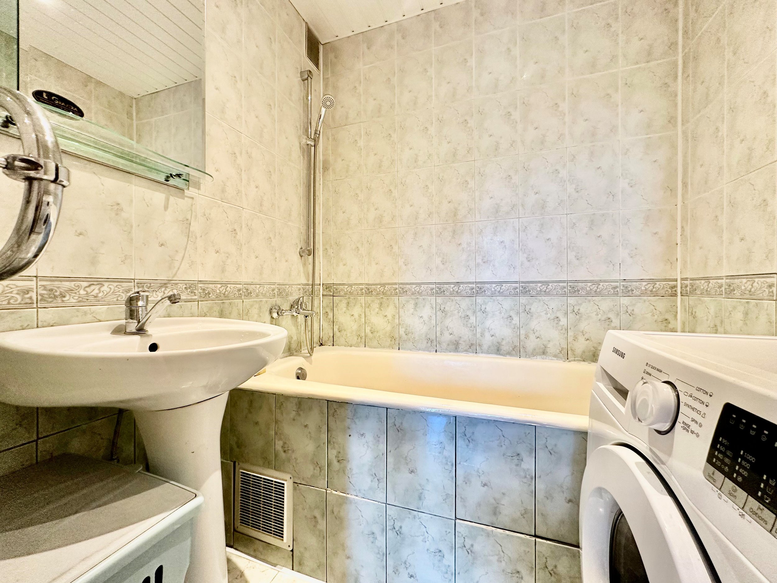 Bute yra visi reikalingiausi baldai: skalbimo mašina, šaldytuvas su šaldikliu, kaitlentė ir t.t.