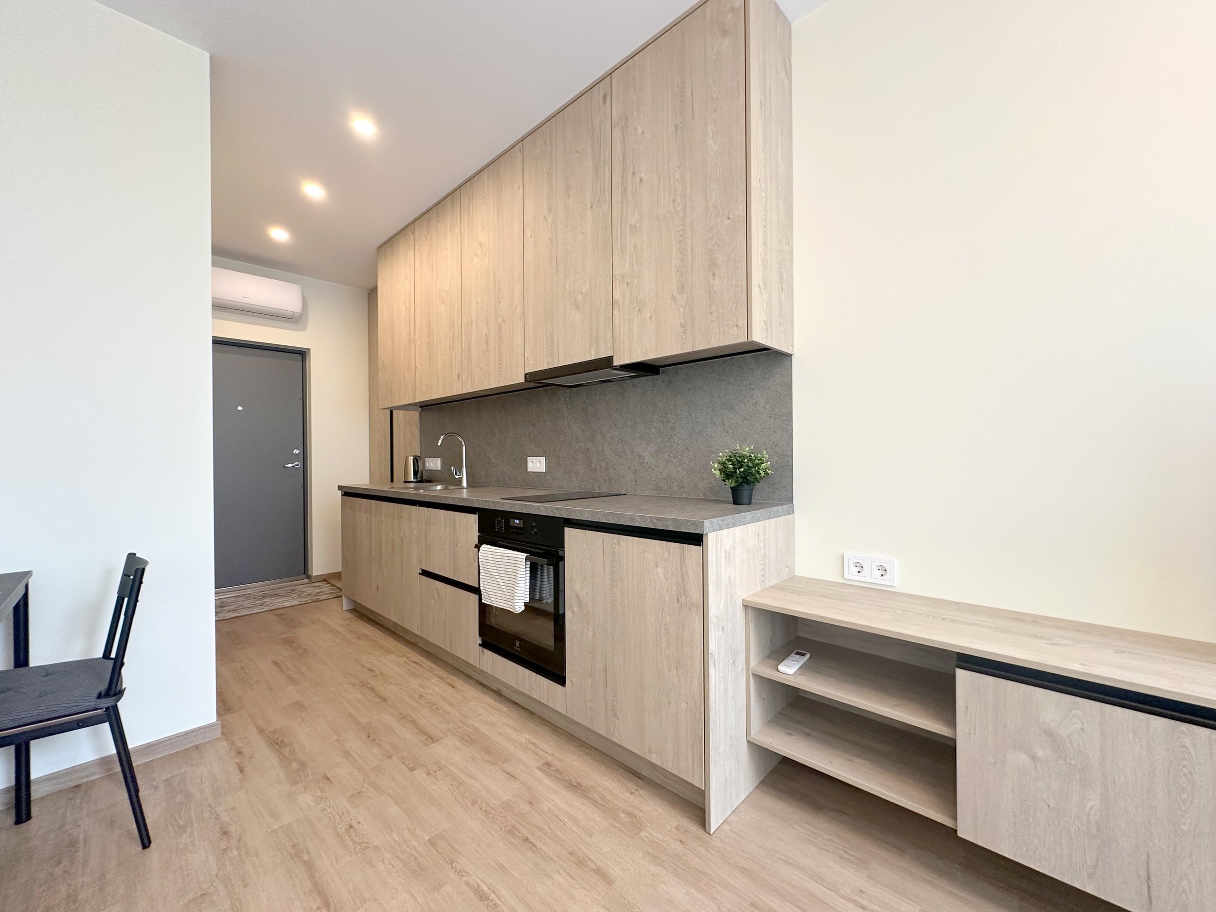 Puikioje, ramioje vietoje, Žirmūnuose, išnuomojamas įrengtas 25 kv.m. ploto, vieno kambario naujai įrengtas jaukus, šviesus butas.