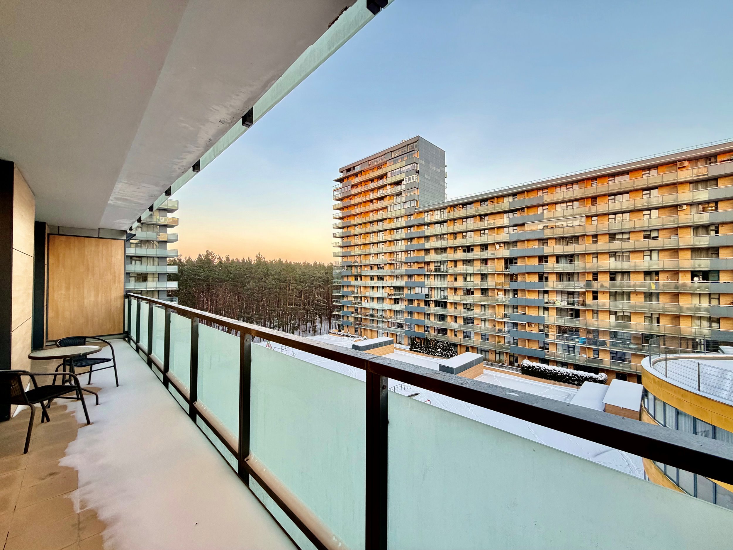 Išplanavimas: svetainė su virtuve, miegamasis, tualetas ir vonia, erdvi 12 kvm terasa.