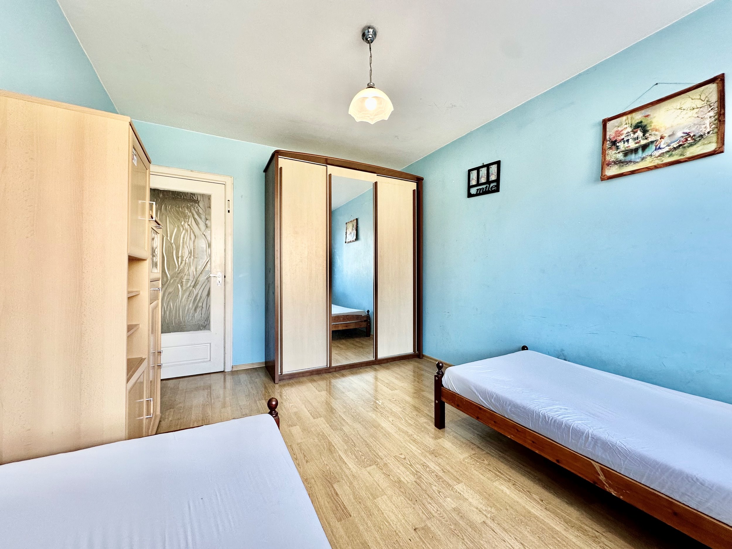 Išplanavimas: svetainė atskrai, du miegamieji, virtuvė atskirai, tualetas ir vonia atskirai, du balkonai.