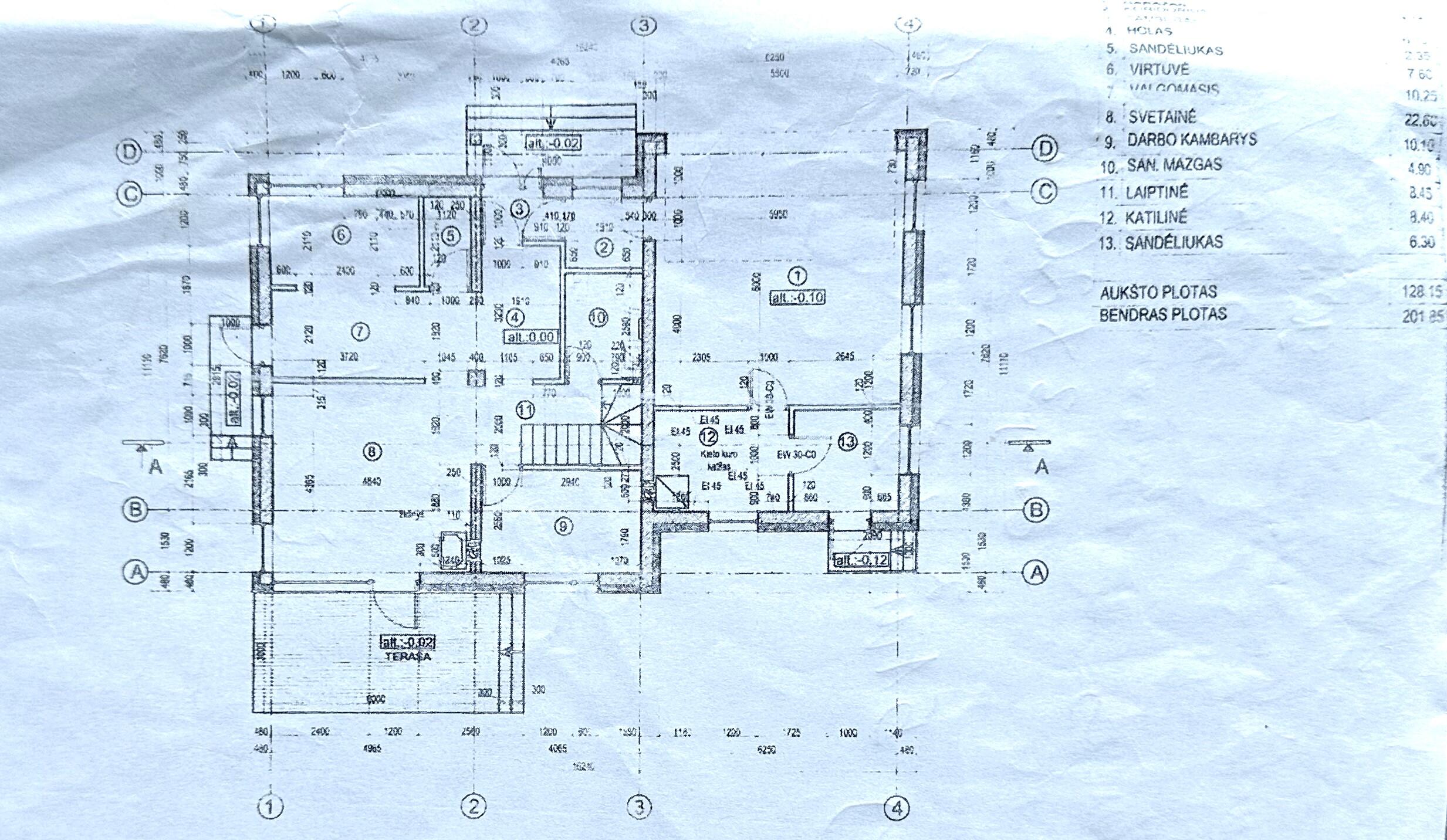 Išplanavimas: 4 miegamieji (galimi įvairūs panaudojimo būdai), svetainė, virtuvė, 3 tamsieji kambariukai/sandėliukai, 3 san. mazgai, erdvus garažas