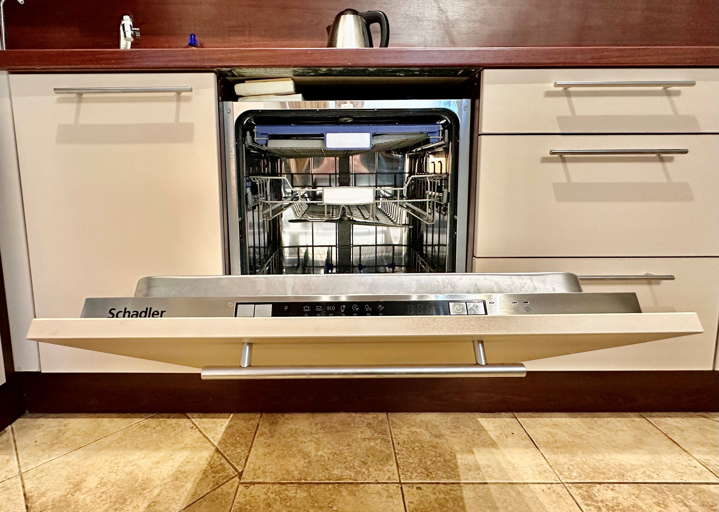 Yra visi reikalingiausi baldai: skalbimo mašina, indaplovė, šaldytuvas su šaldikliu, kaitlentė ir t.t.