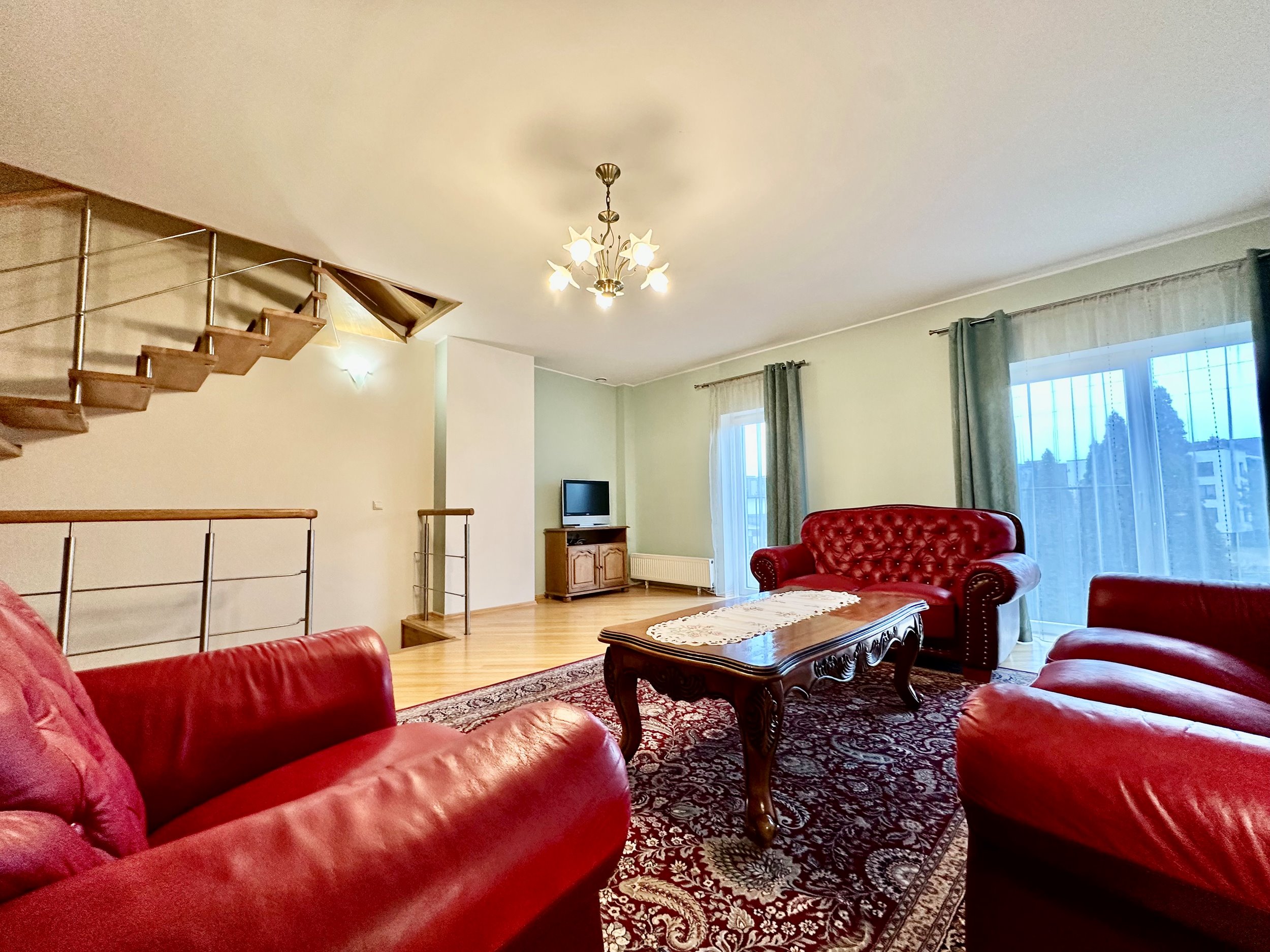 Puikioje, ramioje vietoje, Lazdynėliuose, išnuomojamas įrengtas 151 kv.m. ploto, penkių kambarių jaukus, stilingai įrengtas, 3-jų aukštų kotedžas.